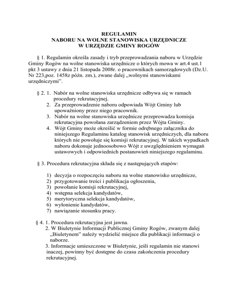 REGULAMIN NABORU NA WOLNE STANOWISKA URZĘDNICZE W