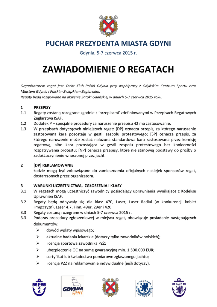 zawiadomienie o regatach - Yacht Klub Polski Gdynia