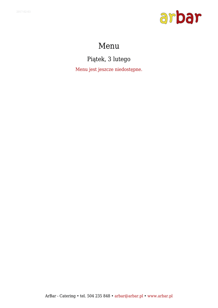 ArBar - Menu Restauracji dn. 2017-02-03 - ArBar
