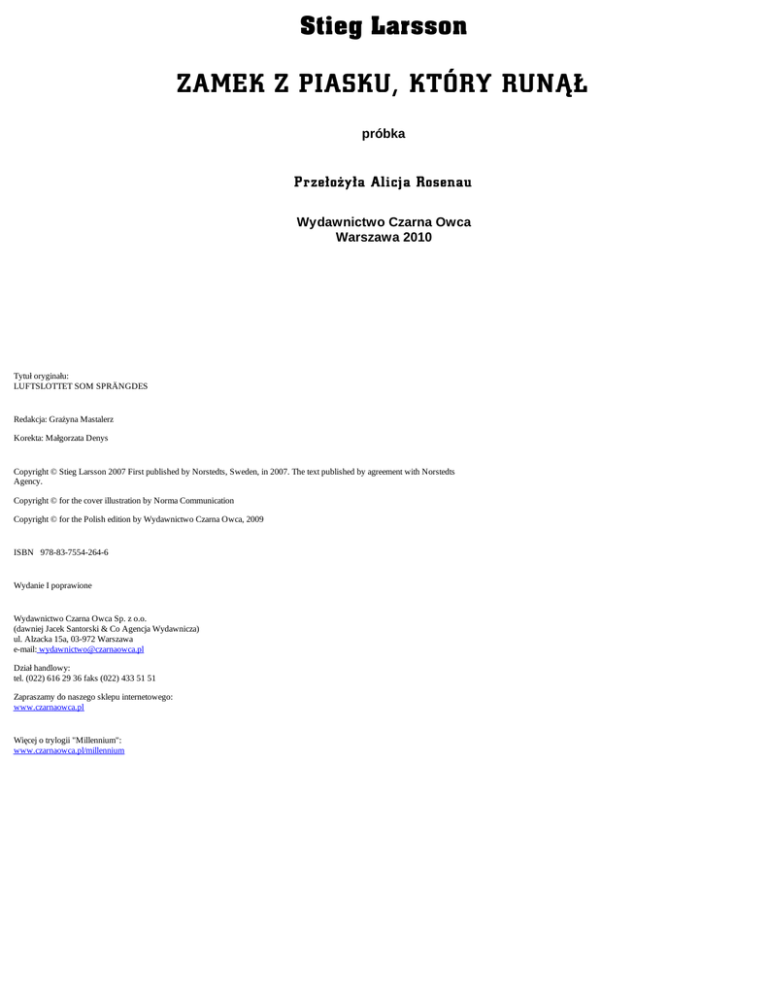 Stieg Larsson ZAMEK Z PIASKU, KTÓRY RUNĄŁ
