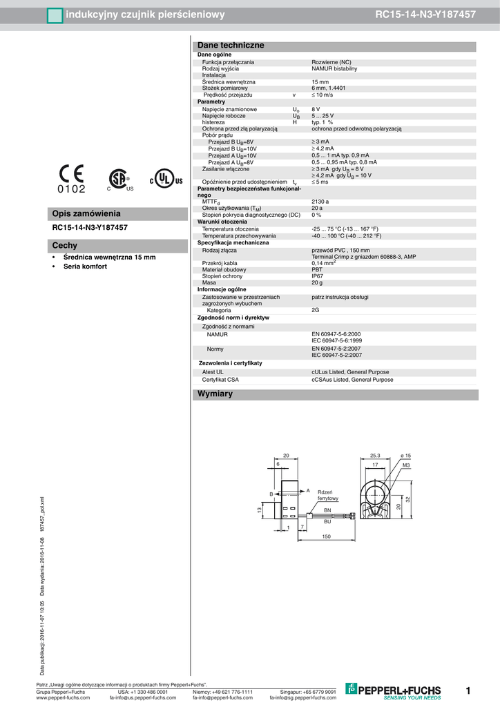 1 indukcyjny czujnik pierścieniowy RC15 14 N3