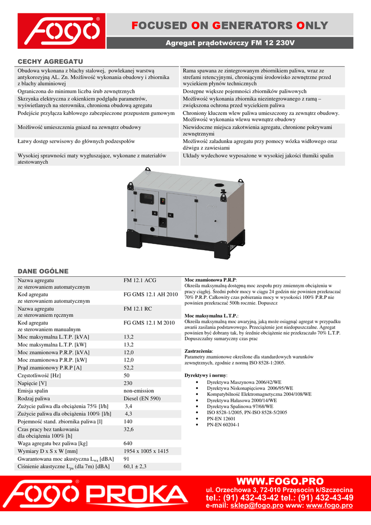 AGREGAT FOGO FM 12.1C - karta katalogowa