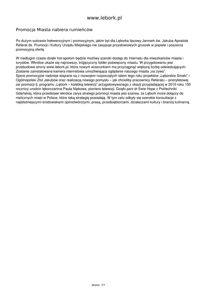 www.lebork.pl - Promocja Miasta nabiera rumieńców