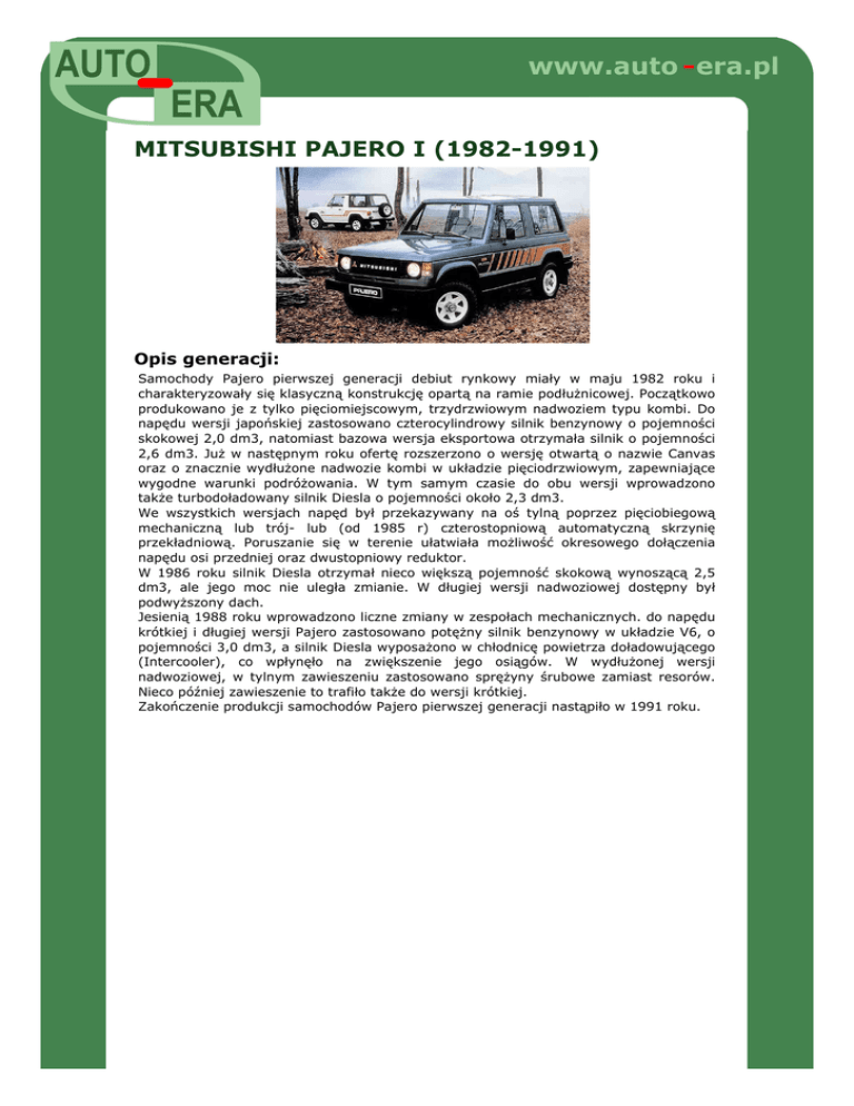 Opis rodziny: MITSUBISHI PAJERO I. - AUTO-ERA