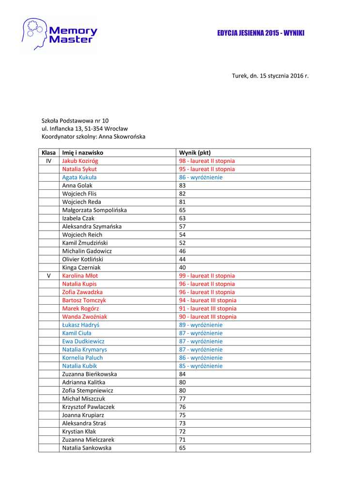 EDYCJA JESIENNA 2015 - WYNIKI - Zsp3wroclaw.szkolnastrona.pl