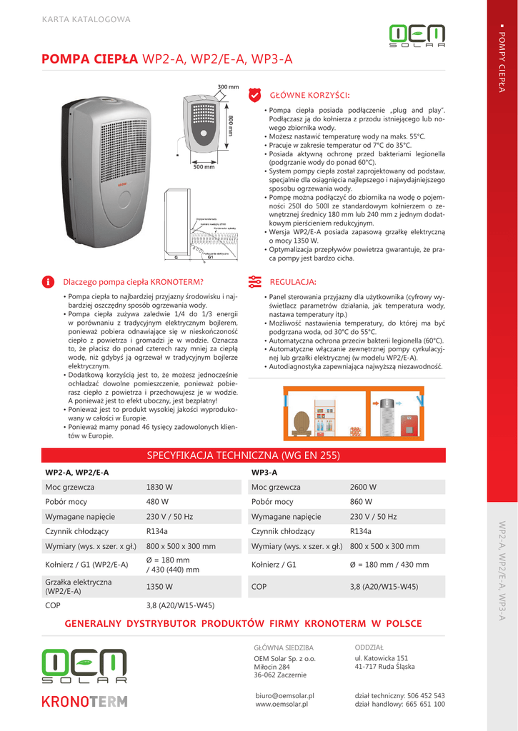 OEM SOLAR-karta prod_pompa ciepla_WP2-A_WP2E-A_WP3-A