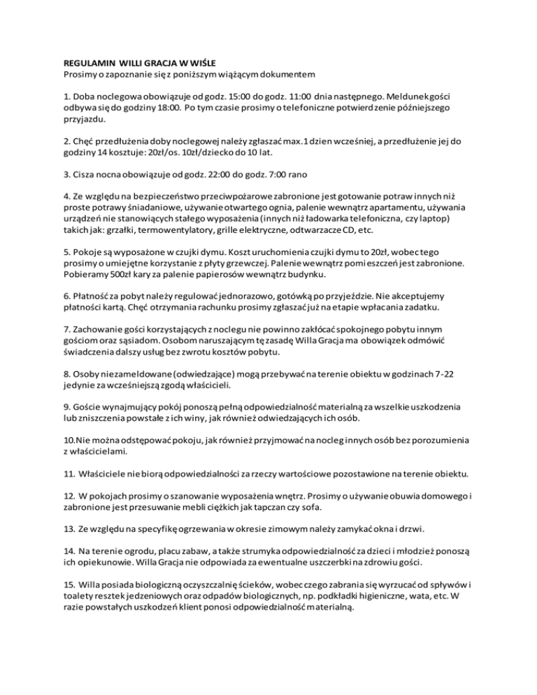 regulaminu - Willa Gracja