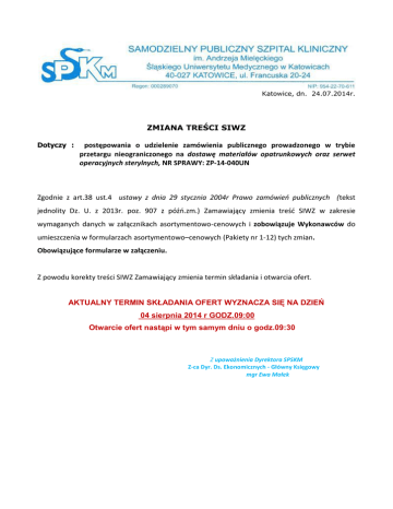 ZMIANA TREŚCI SIWZ Dotyczy : postępowania o udzielenie
