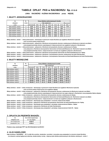 TABELE OPŁAT PKS w RACIBORZU Sp. z o.o