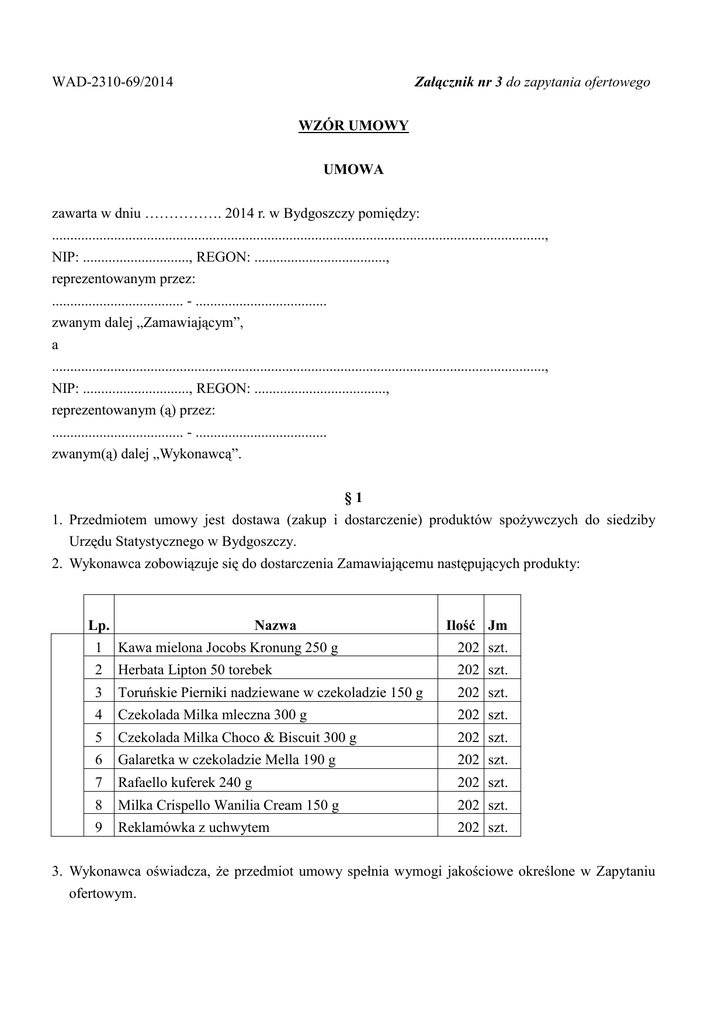 WAD-2310-69/2014 Załącznik nr 3 do zapytania ofertowego WZÓR