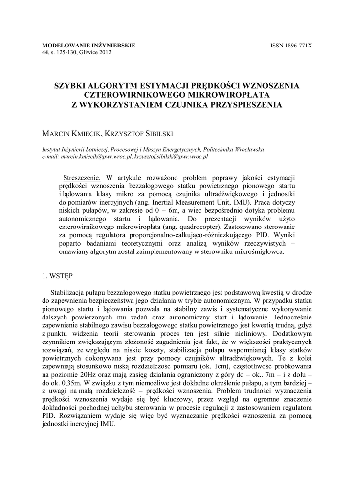 szybki algorytm estymacji prędkości wznoszenia czterowirnikowego