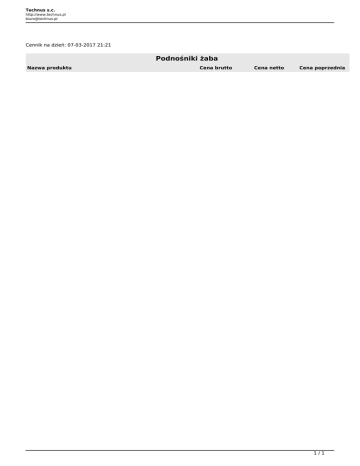 Technus s.c. http://www.technus.pl [email protected] Cennik na dzień: 07-03-2017 21:21 Podnośniki żaba Nazwa produktu Cena brutto Cena netto Cena poprzednia 1/1 Powered by TCPDF (www.tcpdf.org)
