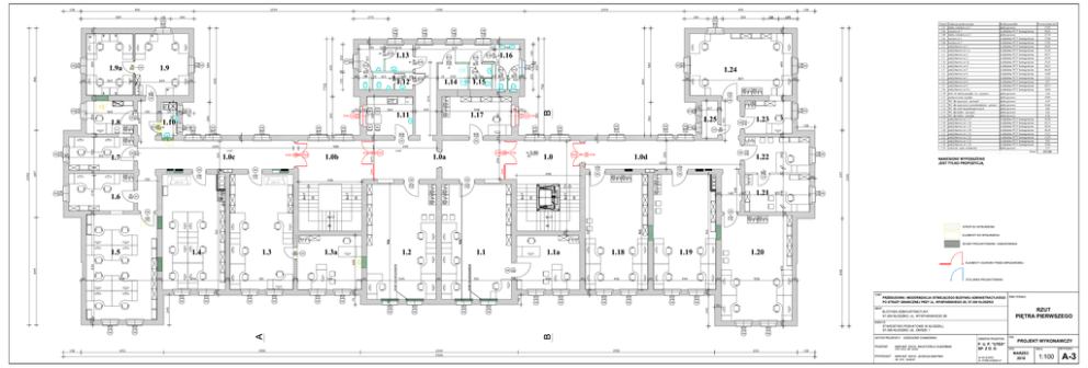 Numer 1.0 1.0a 1.0b 1.0c 1.0d 1.1 1.1a 1.2 1.3 1.3a 1.4 1.5 1.6 1.7 1.8 1.9 1.9a 1.10 1.11 1.12 1.13 1.14 1.15 1.16 1.17 1.18 1.19 1.20 1.21 1.22 1.23 1.24 1.25 Funkacja pomieszczenia klatka schodowa nr 1 korytarz nr 1 klatka schodowa nr 2 korytarz nr 2 korytarz nr 3 pokój biurowy nr 1 pokój biurowy nr 1.a pokój biurowy nr 2 pokój biurowy nr 3 pokój biurowy nr 3a pokój biurowy nr 4 pokój biurowy nr 5 pokój biurowy nr 6 pokój biurowy nr 7 pokój biurowy nr 8 pokój biurowy nr 9 pokój biurowy nr 9.a pom. na sprzęt porządk. i śr. czystości pomieszczenie socjalne WC dla mężczyzn - personel WC dla mężczyzn (z przedsionkiem) - petenci WC dla osób nioepełnosprawnych WC dla kobiet - personel WC dla kobiet - petentki pokój biurowy nr 1.17 pokój biurowy nr 1.18 pokój biurowy nr 1.19 pokój biurowy nr 1.20 pokój biurowy nr 1.21 pokój biurowy nr 1.22 pokój biurowy nr 1.23 pokój biurowy nr 1.24 schowek / pom. techniczne Rodzaj posadzki Powierzchnia [m²] płytki gresowe 27,95 wykładzina PCV homogeniczna 49,42 płytki gresowe 27,74 wykładzina PCV homogeniczna 37,08 wykładzina PCV homogeniczna 37,02 wykładzina PCV homogeniczna 49,92 wykładzina PCV homogeniczna 21,36 wykładzina PCV homogeniczna 49,37 wykładzina PCV homogeniczna 45,59 wykładzina PCV homogeniczna 21,62 wykładzina PCV homogeniczna 44,23 wykładzina PCV homogeniczna 46,38 wykładzina PCV homogeniczna 14,89 wykładzina PCV homogeniczna 13,33 wykładzina PCV homogeniczna 9,57 wykładzina PCV homogeniczna 20,73 wykładzina PCV homogeniczna 18,04 płytki gresowe 3,30 płytki gresowe 10,96 płytki gresowe 4,19 płytki gresowe 10,44 płytki gresowe 4,68 płytki gresowe 3,62 płytki gresowe 6,78 wykładzina PCV homogeniczna 16,58 wykładzina PCV homogeniczna 45,13 wykładzina PCV homogeniczna 44,34 wykładzina PCV homogeniczna 46,36 wykładzina PCV homogeniczna 15,21 wykładzina PCV homogeniczna 14,39 wykładzina PCV homogeniczna 9,59 wykładzina PCV homogeniczna 39,46 płytki gresowe 3,73 813,00 Suma: