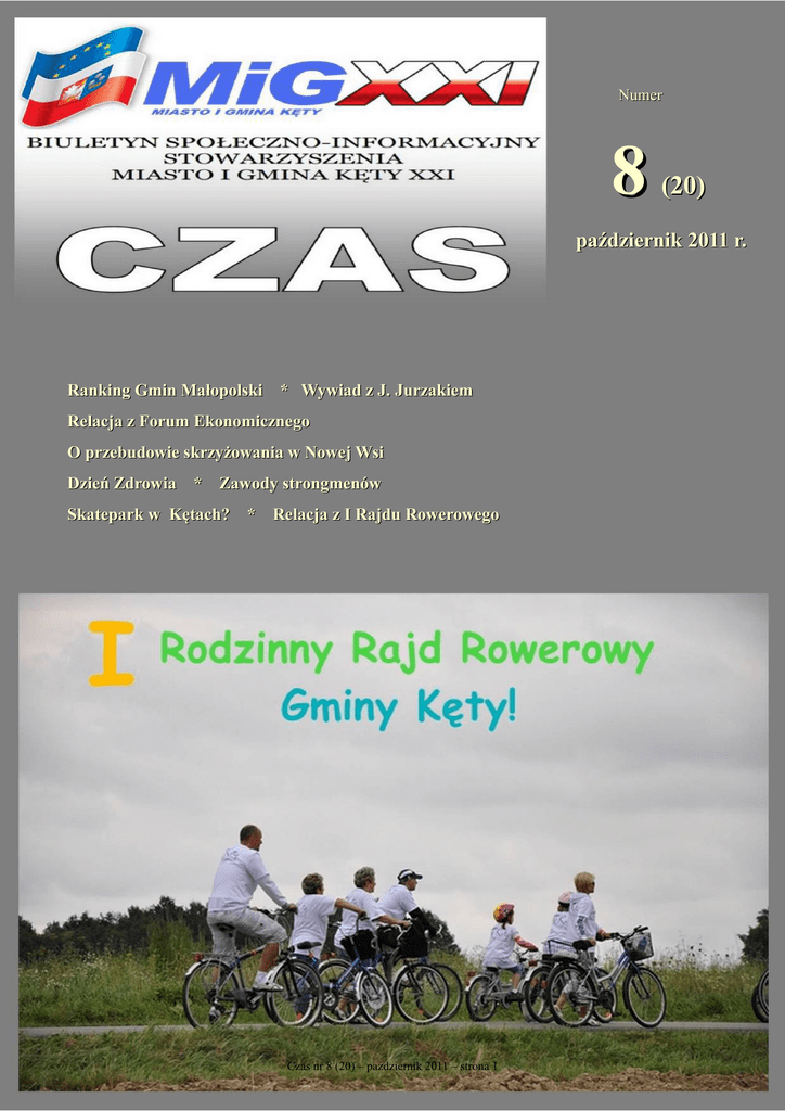 Numer 8 (20) październik 2011 r. Ranking Gmin Małopolski * Wywiad z J. Jurzakiem Relacja z Forum Ekonomicznego O przebudowie skrzyżowania w Nowej Wsi Dzień Zdrowia * Zawody strongmenów Skatepark w Kętach? * Relacja z I Rajdu Rowerowego Czas nr 8 (20) – październik 2011 – strona 1 Czas nr 8 (20) – październik 2011 – strona 2 ZAMIAST WSTĘPU... Demokracji trzeba pomóc Mija prawie rok od wyborów samorządowych. Przed nami kolejne wybory, tym razem parlamentarne. Poszczególne partie prześcigają się w deklaracjach, by pozyskać głosy wyborców, czyli nasze. Media jak zwykle stają się bardzo aktywne, prześcigając się w programach wyborczych, deklarując przy tym całkowity obiektywizm. Niestety na deklaracjach przeważnie się kończy. Wyraźnie bowiem widać, jakiej stacji telewizyjnej czy gazecie jaka odpowiadałaby partia, która powinna zwyciężyć czy też koalicja, która powinna powstać. Dlatego też starają się kreować zalety poszczególnych ugrupowań, aby te właściwe według koncernów medialnych nie traciły na popularności w oczach wyborców. Komitety wyborcze, stosując podobne metody, wskazują wyborcom, kto jest „piękną panną młodą”. Myślę, że nawet mało zainteresowanym polityką nie trzeba wyjaśniać, że „panna młoda” to Platforma Obywatelska, a zabiegających o jej względy konkurentów jest trzech. Po pierwsze, wypróbowany przyjaciel prawie wszystkich rządów, czyli PSL. Następnie starające się o powrót do łask SLD oraz tzw. odłamowiec, czyli Ruch Palikota. Nawiasem mówiąc, niezłym pomysłem było opuszczenie Platformy po to, aby w razie przekroczenia progu wspierać ją ewentualną koalicją. Pozwólcie państwo, że trochę miejsca poświęcę temu zjawisku, które nie jest czymś nowym na polskiej scenie politycznej. Podobnie działo się już wcześniej. Pierwszym takim przykładem jest Tymiński w wyborach prezydenckich. Styl, jaki swego czasu kreując się na scenie politycznej przyjęła Samoobrona i jej nieżyjący lider, jest uderzająco podobny do tego, jaki mogliśmy zaobserwować w ciągu ostatnich czterech lat działalności Janusza Palikota. Jakże bliski tego stylu jest również pan Marcinkiewicz, obecnie gorący zwolennik Platformy. Co prawda używał innych gestów – zamiast świńskiego ryja jeździ na nartach, był aktywny, tańcząc na balach charytatywnych, w końcu zrozpaczony wyjechał do Londynu, by z innej perspektywy spojrzeć na swój ukochany kraj. Jednym z ostatnich przykładów jest pani Kluzik – Rostowska, która znając przez wiele lat środowisko PiS i samego prezesa, powiedziała basta. Pytanie: dlaczego? Czy aż tak długo musiała się męczyć, by dostrzec to zło, które jest w PiS i samym prezesie? Myślę, że powód był zupełnie inny, czego dowodzą założenia PJN. W momencie, gdy nie została szefem tej partii, tym razem szybciej z racji wyborów, uznała, że trzeba się ewakuować, oczywiście do Platformy. Można by podać parę przykładów, jednak te, o których napisałem, wystarczająco opisują to, co ma miejsce. Za sprawą Platformy mamy do czynienia z nowoczesną, proeuropejską polityką, jedyną, która nie dopuści, by w Polsce na nowo zapanował ciemnogród. Wszystko, co uczynili politycy tego ugrupowania przez mijającą kadencję, było słuszne i godne największego uznania. Wszelkiego rodzaju czarne chmury i nieszczęścia, jakie by mogły nadejść nad Polskę, związane są z wygraną PiS. Dlatego warto być kokietowaną „panną młodą”, a adoratorzy plus niektóre media wskażą Polakom właściwy wybór, który jest tylko jeden. Podobnie jak w minionej epoce, ale teraz jest demokracja, a jej trzeba pomóc. Życzę moim rodakom i sobie samemu dobrego wyboru – mimo, że „panna młoda” jest tylko jedna, to pójdźmy do wyborów. Józef Nycz PRZED WYBORAMI... Chcę być posłem, na którego Gmina Kęty może liczyć J.J: Po pierwsze, swojego startu nie traktuję jako chęci poszukiwania czy zmiany miejsca pracy. To właśnie moje doświadczenia zarówno jako nauczyciela, jak i pracownika samorządowego, a przede wszystkim radnego skłoniły mnie do startu w wyborach. Redakcja „Czasu” rozmawia z kandydatem Dotychczasowa moja aktywność społeczna utwierdza mnie w przekonaniu, że działalność Sejmu nie może toczyć się w oderwaniu od realnych problemów ludzi żyjących w takich miejscach jak Gmina Kęty. Dlatego też zdecydowałem się na start, zwłaszcza iż uważam, że Gmina Kęty zasługuje na prawdziwego reprezentanta w Sejmie, który zadba o interesy takich społeczności, jak nasza. na posła – Jarosławem Jurzakiem. Cz.: Dlaczego postanowił Pan startować w wyborach parlamentarnych? Czy dotychczasowe miejsca pracy Pana nie satysfakcjonowały? Czas nr 8 (20) – październik 2011 – strona 3 gram PiS jest jedynym, jaki został gruntownie przygotowany, a nie napisany na potrzeby kampanii wyborczej. Cz.: No i z PiS-em jest Pan długo związany... J.J.: ... od 2003 roku. Decyzja o wstąpieniu właśnie do tej partii nie była przypadkowa. Założenie było tylko jedno, że jeśli uznam, iż w PiS nie ma dla mnie miejsca, to na pewno nigdy nie przejdę do innego ugrupowania, co najwyżej zrezygnuję z polityki. Takie roszady uważam za zdradę. Tak to już jest, że jak ktoś raz zdradził, to następne zdrady przychodzą mu coraz łatwiej. Najgorsze, że oszukuje się wówczas wyborców w imię własnych interesów politycznych. Dlatego właśnie nie PJN. Cz.: Do czego przede wszystkim ma przekonać wyborców program PiS-u? Jarosław Jurzak o sobie: Urodziłem w Oświęcimiu, mam 43 lata. Mieszkam od urodzenia w Kętach. Z żoną Alicją jestem od 18 lat. Wspólnie wychowujemy trzy wspaniałe córki. W 1993r. ukończyłem studia na Akademii Wychowania Fizycznego w Krakowie. Od kilkunastu lat zawodowo związany jestem z edukacją i sportem. W trakcie studiów aktywnie działałem w samorządzie studenckim. Od 2006 r