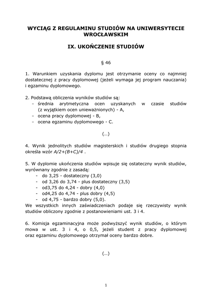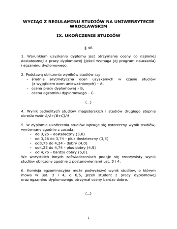 wyciąg z regulaminu studiów na uniwersytecie wrocławskim ix