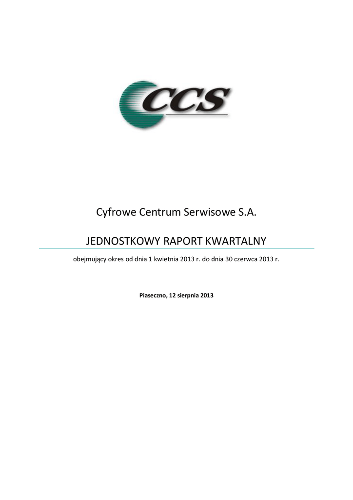 Jednostkowy raport kwartalny Cyfrowe Centrum Serwisowe