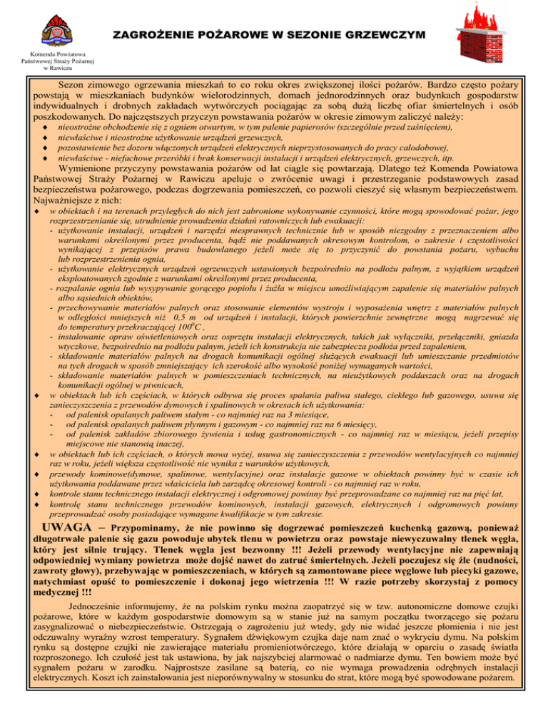 ZAGROŻENIE POŻAROWE W SEZONIE GRZEWCZYM
