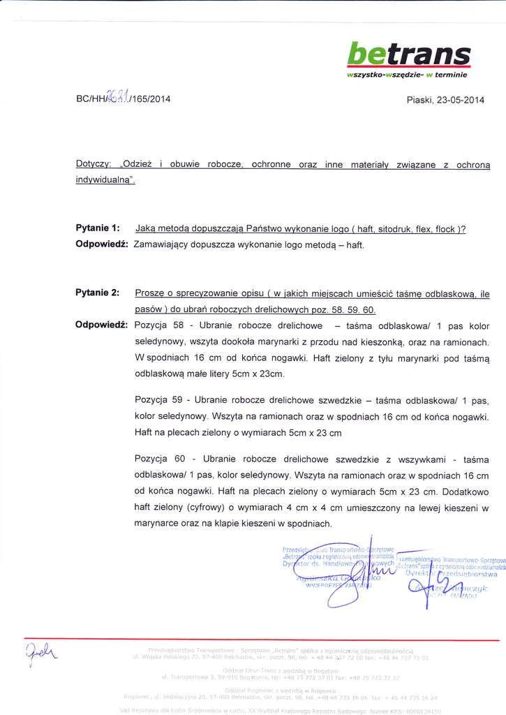 Dotvczv: ,,odzież i obuwie robocze, ochronne oraz inne materiałv związane