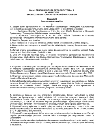 Statut ZESPOŁU SZKÓŁ SPOŁECZNYCH nr 7 W KRAKOWIE