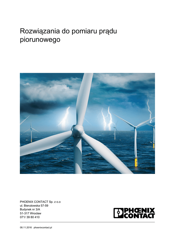 Rozwiązania do pomiaru prądu piorunowego PHOENIX CONTACT Sp. z o.o ul. Bierutowska 57-59 Budynek nr 3/A 51-317 Wrocław 071/ 39 80 410 08.11.2016 phoenixcontact.pl Rozwiązania do pomiaru prądu piorunowego Przegląd • Elektrownie wiatrowe są często poddawane obciążeniom wynikającym z uderzeń piorunów. Dotychczas dokumentowanie uderzeń pioruna i jego siły było bardzo trudne. • Kompleksowe rozwiązanie LM-S firmy Phoenix Contact umożliwia precyzyjny pomiar i analizę uderzeń pioruna w łopaty elektrowni wiatrowej. • Dzięki ciągłemu zdalnemu monitorowaniu oraz kojarzeniu danych pomiarowych z parametrami eksploatacyjnymi elektrowni wiatrowej możliwe jest lepsze podejmowanie decyzji o konserwacji zapobiegawczej. Zastosowanie Uderzenia pioruna mogą spowodować uszkodzenie łopat wirnika elektrowni wiatrowej oraz awarię urządzeń elektronicznych. W większości przypadków nie da się jednak bezpośrednio rozpoznawać ani rejestrować uderzeń. Ponieważ urządzenia zabezpieczające mogą odprowadzić jedynie ograniczoną liczbę uderzeń pioruna, wymienia się je zapobiegawczo. Jest to czasochłonne i wiąże się z dużymi kosztami. Pomocne jest zastosowanie układu pomiaru prądu piorunowego, który rejestruje istotne parametry prądów piorunowych. Pozyskane informacje pomagają w podjęciu decyzji o działaniach kontrolnych i konserwacyjnych. Poza tym towarzystwa ubezpieczeniowe coraz częściej wymagają wykazania, że piorun faktycznie uderzył w daną turbinę wiatrową. 08.11.2016 phoenixcontact.pl PHOENIX CONTACT 2/5 Rozwiązanie System Lightning Monitoring System LM-S firmy Phoenix Contact rozpoznaje i analizuje wszystkie istotne parametry prądów piorunowych. Można na ich podstawie wyciągnąć wnioski o faktycznym obciążeniu instalacji. Czujniki systemu pomiarowego montuje się na urządzeniach zabezpieczających. Przy uderzeniu pioruna prąd udarowy tworzy wokół przewodu pole magnetyczne, które jest mierzone przez czujniki. System wysyła wyniki pomiaru światłowodem do jednostki centralnej. Na podstawie uzyskanych wartości jednostka ta określa maksymalne natężenie prądu piorunowego z charakterystyką, ładunek oraz energię właściwą. Zastosowanie systemu LM-S w elektrowni wiatrowej System LM-S może zostać zintegrowany z siecią jako osobny element, za pomocą modemu lub poprzez złącze Ethernet. Integracja z istniejącym układem sterowania jest prosta i odbywa się za pomocą wywołania adresów IP. W celu poinformowania użytkownika instalacji o uderzeniu pioruna LM-S może wygenerować SMS alarmowy. Za pomocą przeglądarki internetowej uprawniony personel może pobrać szczegółowe informacje o uderzeniu pioruna. Dzięki temu użytkownik w krótkim czasie uzyskuje informacje o stanie urządzeń zabezpieczających i zaplanować oraz przeprowadzić w odpowiednim czasie działania konserwacyjne. Osiąga się w ten sposób cel: stabilną pracę instalacji. 08.11.2016 phoenixcontact.pl PHOENIX CONTACT 3/5 Łatwa integracja Kompletne rozwiązanie umożliwia zintegrowanie systemu w istniejącej instalacji bez dużych nakładów. Dzięki zintegrowanemu zasilaczowi oraz ochronie przed przepięciami do komunikacji integracja jest niezwykle prosta. Przewody czujników są dostępne w długościach od 10 m do 100 m. Wystarczy zamontować skrzynkę zacisków, a przewody wetknąć do urządzenia przez przygotowane wprowadzenia. Niepotrzebne są do tego narzędzia specjalistyczne. Kompleksowe rozwiązanie do pomiaru wyładowań atmosferycznych w elektrowniach wiatrowych Zalety Przekonująca diagnoza dzięki natychmiastowemu pozyskaniu danych mierzonych w czasie rzeczywistym Cenna pomoc w podejmowaniu decyzji na temat przeglądów serwisowych dzięki zdalnemu monitorowaniu Proste wyprowadzanie danych i konfiguracja za pomocą zintegrowanego serwera WWW Włączenie do standardowych sieci poprzez gniazdo RJ45 Produkty Opis Typ Nr art. Zasilanie QUINT-PS/1AC/24DC/ 3.5 2866747 LM-S LM-S-A/C-3S-ETH 2800618 Czujnik LM-S-LS-H 2800616 Przewody instalacyjne HCS PROFINET, wstępnie konfekcjonowane, dostępne w długościach od 10 m do 100 m (BFOC/PPCME) FOC-PN-HCS-1018/... 1402190 08.11.2016 phoenixcontact.pl PHOENIX CONTACT 4/5 Układ ochrony przed przepięciami ETH DT-LAN-CAT.6A 2908726 Układ ochrony przed przepięciami 230 V, typ 2 VAL-MS 230/1+1 2804429 Rozwiązanie do montażu w gotowych instalacjach WIL-SC-LMS-SET01 2403310 Phoenix Contact 2016 © – all rights reserved phoenixcontact.com 08.11.2016 phoenixcontact.pl PHOENIX CONTACT 5/5