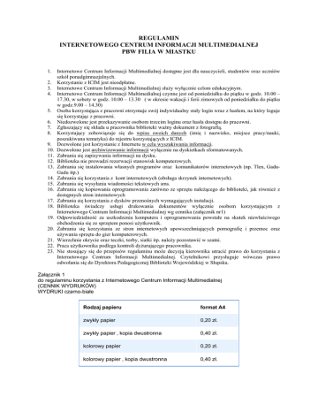 regulamin internetowego centrum informacji multimedialnej pbw filia