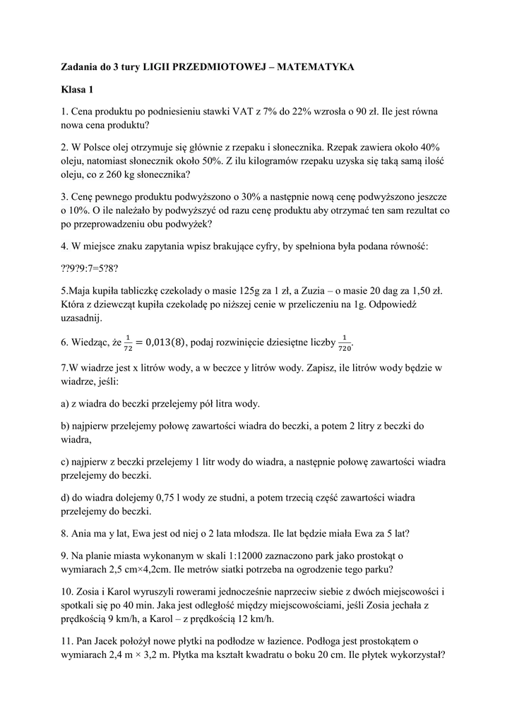 Zadania do 3 tury LIGII PRZEDMIOTOWEJ – MATEMATYKA