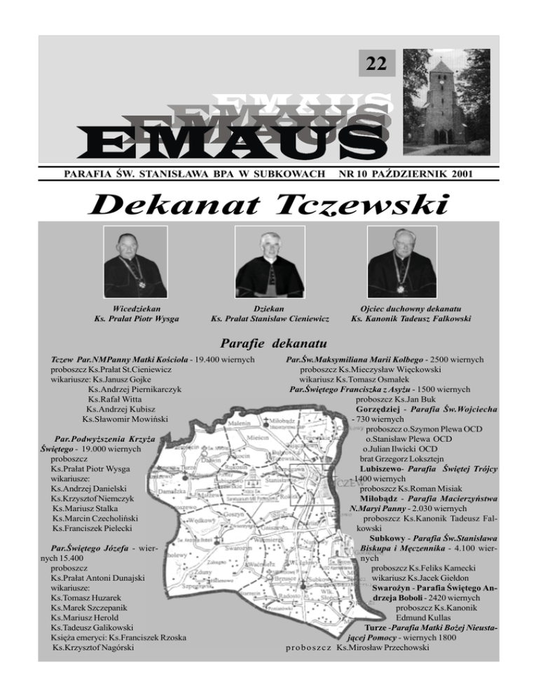 1 22 PARAFIA ŚW. STANISŁAWA BPA W SUBKOWACH NR 10 PAŹDZIERNIK 2001 Dekanat Tczewski Wicedziekan Ks. Prałat Piotr Wysga Dziekan Ks. Prałat Stanisław Cieniewicz Ojciec duchowny dekanatu Ks. Kanonik Tadeusz Falkowski Parafie dekanatu Tczew Par.NMPanny Matki Kościoła - 19.400 wiernych proboszcz Ks.Prałat St.Cieniewicz wikariusze: Ks.Janusz Gojke Ks.Andrzej Piernikarczyk Ks.Rafał Witta Ks.Andrzej Kubisz Ks.Sławomir Mowiński Par.Podwyższenia Krzyża Świętego - 19.000 wiernych proboszcz Ks.Prałat Piotr Wysga wikariusze: Ks.Andrzej Danielski Ks.Krzysztof Niemczyk Ks.Mariusz Stalka Ks.Marcin Czecholiński Ks.Franciszek Pielecki Par.Świętego Józefa - wiernych 15.400 proboszcz Ks.Prałat Antoni Dunajski wikariusze: Ks.Tomasz Huzarek Ks.Marek Szczepanik Ks.Mariusz Herold Ks.Tadeusz Galikowski Księża emeryci: Ks.Franciszek Rzoska Ks.Krzysztof Nagórski Par.Św.Maksymiliana Marii Kolbego - 2500 wiernych proboszcz Ks.Mieczysław Więckowski wikariusz Ks.Tomasz Osmałek Par.Świętego Franciszka z Asyżu - 1500 wiernych proboszcz Ks.Jan Buk Gorzędziej - Parafia Św.Wojciecha - 730 wiernych proboszcz o.Szymon Plewa OCD o.Stanisław Plewa OCD o.Julian Ilwicki OCD brat Grzegorz Loksztejn Lubiszewo- Parafia Świętej Trójcy - 1400 wiernych proboszcz Ks.Roman Misiak Miłobądz - Parafia Macierzyństwa N.Maryi Panny - 2.030 wiernych proboszcz Ks.Kanonik Tadeusz Falkowski Subkowy - Parafia Św.Stanisława Biskupa i Męczennika - 4.100 wiernych proboszcz Ks.Feliks Kamecki wikariusz Ks.Jacek Giełdon Swarożyn - Parafia Świętego Andrzeja Boboli - 2420 wiernych proboszcz Ks.Kanonik Edmund Kullas Turze -Parafia Matki Bożej Nieustającej Pomocy - wiernych 1800 p r o b o s z c z Ks.Mirosław Przechowski 2 postrzegającym rodzinę Kwiatków jako jedną z tych, która nie zagubiła busoli, nie ma przeto problemu z kierunkiem i celem ziemskiej wędrówki. Jak Wam się udaje budować życie w harmonii z Bogiem i ludźmi? Wątpliwości, niepewność, problemy często są obecne w naszym życiu. Myślę, że ważne jest, aby mieć stałe, niezmienne punkty poparcia, do których można odnieść to wszystko, co dzieje się wokół nas. Nasze punkty to Kościół, ro- Kiedy dwoje młodych, wySzkoła w Małej Słońcy od niekształconych ludzi, mam na mydawna może pochwalić się salą śli Pana i Pańska żonę, zaszywa komputerową. W jaki sposób się na wsi i to jeszcze takiej "dazdobywa się środki na taki cel? leko od szosy" to nawet ci najSzuka się ludzi z wielkim sercem, bardziej obojętni zadają sobie no i z pewnymi możliwościami. pytanie, co ich tu przyniosło? Czy nie wywołuje u Pana uczucia Padają wtedy słowa o posłannicniepokoju to, że w dzisiejszej szkotwie, spełnieniu woli Bożej. Jaka le bardziej liczy się sprzęt, wyposajest prawda, Panie Marceli? żenie niż charyzmat nauczyciela? Prawda jest bardziej prozaiczna. Myślę, że nie jest tak do końca. Byliśmy po szkołach, na progu Owszem sprzęt jest ważny, bo żyjewspólnego życia, praca na wsi zamy w epoce techniki i byłoby głupopewniała nam własny dach nad głotą nie korzystać z tych udogodnień, wą. Początkowo był to wyniekiedy jest to wręcz niemożlinajmowany pokój, we. Jednak nauczyciel Wywiad później mieszkama swoje miejsce i zaz Marcelim Kwiatkiem nie służbowe. danie do spełnienia, dyrektorem Ostateczną denawet w najnowoczeSzkoły Podstawowej cyzję podjęliśmy śniejszej szkole, jest to w Małej Słońcy po moim powrocie z rzecz oczywista. wojska. Był to przemyślany, w Egzamin dla szóstoklasistów pełni świadomy krok w naszym ży- dzina, tradycja. Ważna jest także wywołał w kraju wiele kontrociu. Znaliśmy już wtedy trudności i umiejętność słuchania innych. wersji. Co sądzi Pan o tym sporadości tego zawodu i życia na wsi. Zazdrośnicy twierdzą jednak, sobie badania poziomu wiedzy? Proszę opowiedzieć czytelni- że w tym pełnym chaosu świecie Egzamin określa poziom zdobykom "Emaus" o początkach żyć w zgodzie z dekalogiem nie tej wiedzy ucznia i to takiego, który Waszego pobytu w gminie Sub- sposób. Jeżeli ktoś za takiego potrafi zapanować nad swoimi nerkowy, o porażkach, sukcesach, prawego uchodzi, to znaczy jest wami. Niestety, w żaden sposób nie wątpliwościach i nadziei. dobrym aktorem. Jak by Pan mierzy pracy szkoły. Im mniej zdolPracę rozpoczęliśmy we wrze- przekonał tych niedowiarków, ny i aktywny uczeń, tym cięższa praśniu 1984 roku. Żona jako nauczy- współczesnych "Tomaszów"? ca i mniejsze jej efekty. cielka nauczania początkowego w Zawsze są wpadki, tego się nie Czy może Pan podać, ilu absolSP w Małym Garcu, ja jako na- uniknie, najważniejsza jest wola wentów szkoły w Małej Słońcy uczyciel fizyki i matematyki w SP walki. ukończyło w ostatnich dziesięciu w Małej Słońcy. Mieszkaliśmy w Również i na płaszczyźnie za- latach studia? Subkowach u państwa Teresy i Je- wodowej odnosi Pan sukcesy. Niestety, tylko w przybliżeniu, rzego Piotrowskich. Ten czas Jako Dyrektor Szkoły Podstawo- gdyż z nie wszystkimi absolwentawspominamy zawsze ciepło i mile. wej w Małej Słońcy zdołał Pan mi utrzymuję kontakty, ponadto, i to Później było mieszkanie służbowe przekonać Zarząd i Radę Gminy jest pocieszające, są osoby które w M. Garcu, które dzisiaj jest na- do rozbudowy swojej szkoły i to kończyły zawodówkę i po przerwie szą własnością. Mamy trzy wspa- w okresie, kiedy większość środ- kontynuują naukę, nawet zaoczne niałe córki i pracę dającą satysfak- ków na inwestycje pochłania bu- studia. Odpowiadając na pytanie, cję. To wszystko mieścimy w ka- dowa szkoły w Subkowach. Przy- jest to 11 osób. tegorii sukcesu. Niepokoi nas znaję, że wyczyn to nie lada. Jakie jeszcze sprawy spędzaprzyszłość młodzieży, także właCieszę się, że jest to tak postrze- ją sen z dyrektorskich oczu? snych dzieci, gdyż wydaje się, że gane, jednak przede wszystkim doMiędzy innymi małe pienią