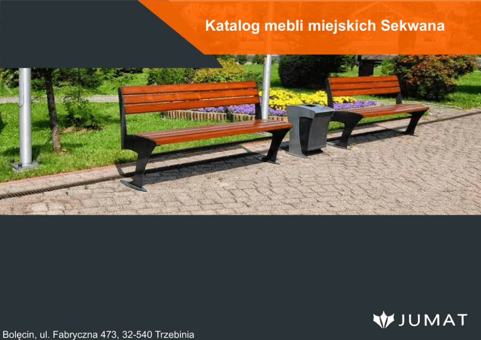 Katalog mebli miejskich Sekwana Bolęcin, ul. Fabryczna 473, 32-540 Trzebinia Meble parkowe Sekwana to meble o eleganckim i funkcjonalnym kształcie. Jako producent małej architektury miejskiej zapraszamy Was do zobaczenia elementów serii Sekwana. Ławki parkowe Sekwana dwustronne kod: 0128 Ławki parkowe Sekwana, kod: 0124 Donice miejskie Sekwana kod: 0305 Kosze miejskie Sekwana kod: 0216 Ławki parkowe Sekwana kod: 0127 www.jumatsc.pl [email protected] tel. 32 613 77 76 tel. 790 200 084 www.jumat-design.pl Ławki parkowe Sekwana, kod: 0124 Ławki parkowe Sekwana kod: 0127 www.jumatsc.pl [email protected] tel. 32 613 77 76 tel. 790 200 084 www.jumat-design.pl Kosze miejskie Sekwana kod: 0216 Donice miejskie Sekwana kod: 0305 www.jumatsc.pl [email protected] tel. 32 613 77 76 tel. 790 200 084 www.jumat-design.pl Ławki parkowe Sekwana ażur, kod: 0124A Jako producent małej architektury zapraszamy Was do zobaczenia pozostałych elementów serii takich jak donice miejskie, stojaki na rowery czy też ławki parkowe.