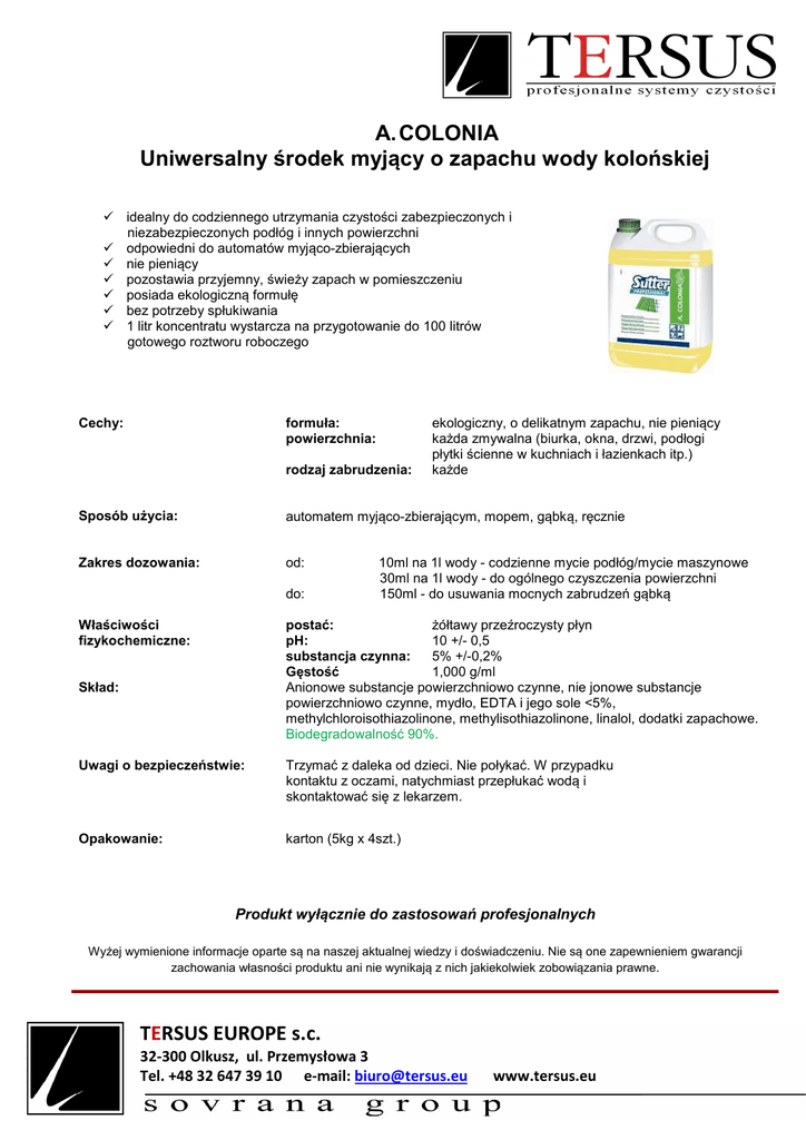 TERSUS EUROPE s.c. A. COLONIA Uniwersalny środek myjący o