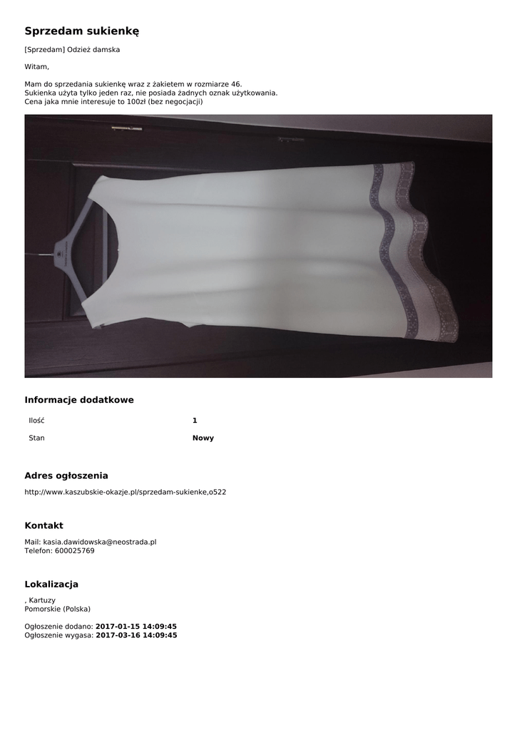 Sprzedam sukienkę - Kaszubskie Okazje