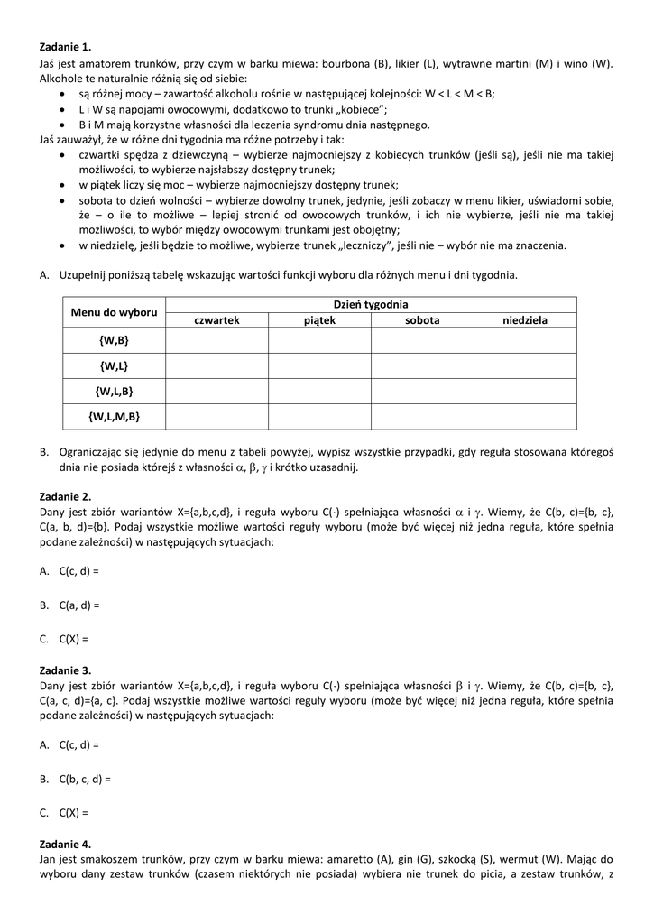 z którego wybiera Jan – oznaczone X* – to de facto wszystkie podzbiory X (dopuszczamy, że Jan może nic nie pić).
