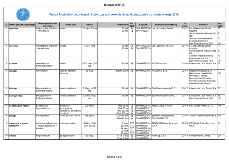 Biuletyn 2015-05 Wykaz Produktów Leczniczych, które uzyskały