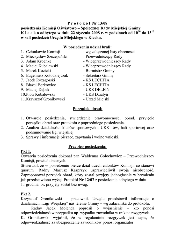 Protokół nr 13 z 22.01.08 Kom.Ośw.