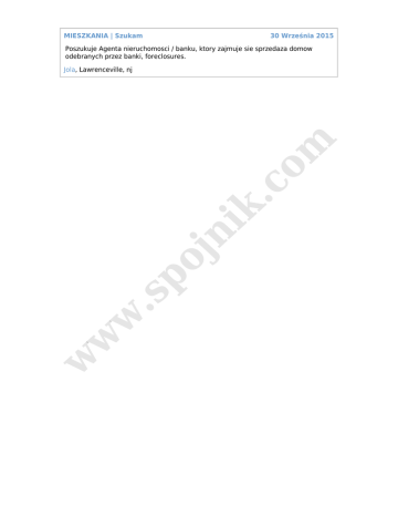 MIESZKANIA | Szukam 30 Września 2015 Poszukuje Agenta nieruchomosci / banku, ktory zajmuje sie sprzedaza domow odebranych przez banki, foreclosures. w w w .s po jn ik .c o m Jola, Lawrenceville, nj
