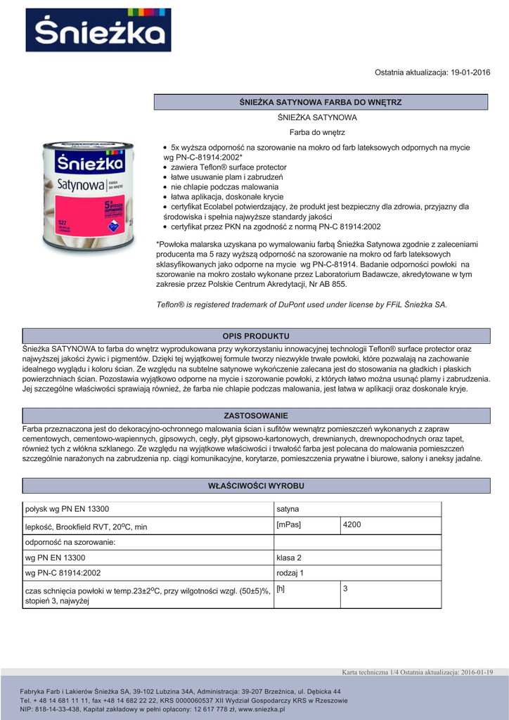 Ostatnia aktualizacja: 19-01-2016 ŚNIEŻKA SATYNOWA FARBA