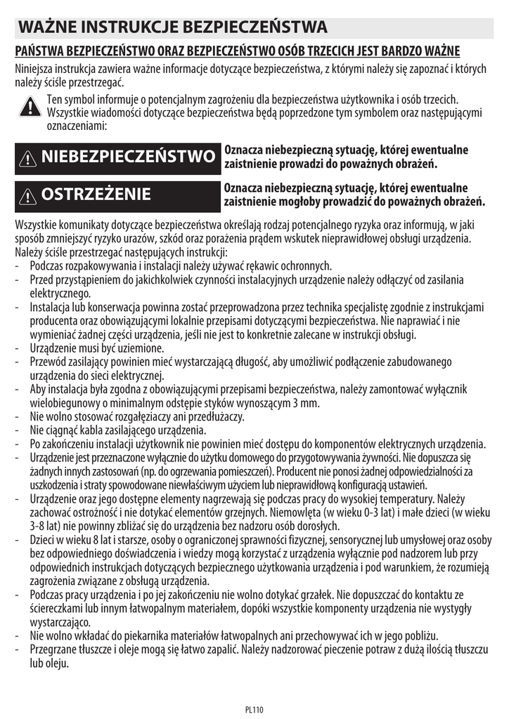 ważne instrukcje bezpieczeństwa niebezpieczeństwo