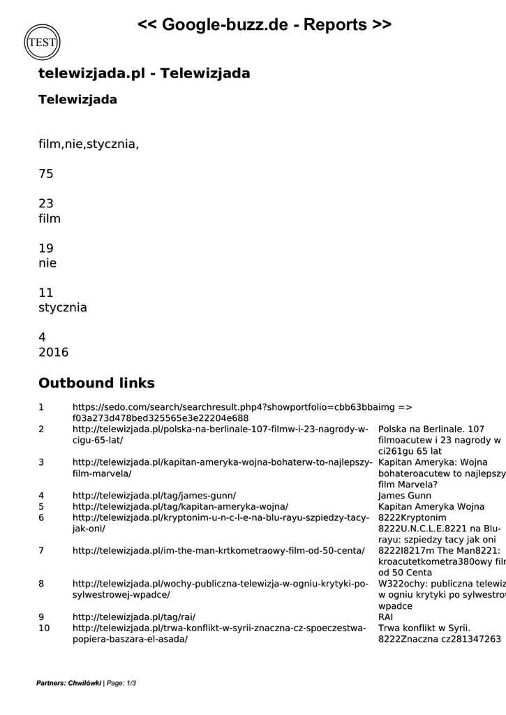 << Google-buzz.de - Reports >> telewizjada.pl - Telewizjada Telewizjada film,nie,stycznia, 75 23 film 19 nie 11 stycznia 4 2016 Outbound links 1 2 3 4 5 6 7 8 9 10 https://sedo.com/search/searchresult.php4?showportfolio=cbb63bbaimg => f03a273d478bed325565e3e22204e688 http://telewizjada.pl/polska-na-berlinale-107-filmw-i-23-nagrody-w- Polska na Berlinale. 107 cigu-65-lat/ filmoacutew i 23 nagrody w ci261gu 65 lat http://telewizjada.pl/kapitan-ameryka-wojna-bohaterw-to-najlepszy- Kapitan Ameryka: Wojna film-marvela/ bohateroacutew to najlepszy film Marvela? http://telewizjada.pl/tag/james-gunn/ James Gunn http://telewizjada.pl/tag/kapitan-ameryka-wojna/ Kapitan Ameryka Wojna http://telewizjada.pl/kryptonim-u-n-c-l-e-na-blu-rayu-szpiedzy-tacy- 8222Kryptonim jak-oni/ 8222U.N.C.L.E.8221 na Blurayu: szpiedzy tacy jak oni http://telewizjada.pl/im-the-man-krtkometraowy-film-od-50-centa/ 8222I8217m The Man8221: kroacutetkometra380owy film od 50 Centa http://telewizjada.pl/wochy-publiczna-telewizja-w-ogniu-krytyki-po- W322ochy: publiczna telewiz sylwestrowej-wpadce/ w ogniu krytyki po sylwestrow wpadce http://telewizjada.pl/tag/rai/ RAI http://telewizjada.pl/trwa-konflikt-w-syrii-znaczna-cz-spoeczestwa- Trwa konflikt w Syrii. popiera-baszara-el-asada/ 8222Znaczna cz281347263 Partners: Chwilówki | Page: 1/3 << Google-buzz.de - Reports >> 11 12 http://telewizjada.pl/tag/republika-tadeusz-biedzki/ http://telewizjada.pl/poczona-liga-trafi-do-telewizji/ 13 http://telewizjada.pl/sekret-w-ich-oczach-za-renicami-nic-nie-wida/ 14 http://telewizjada.pl/media-w-polsce-do-kogo-naley-prasa-telewizjaportale-czy-radio/ 15 http://telewizjada.pl/przebudzenie-mocy-przecigno-titanica-ju-tylkojeden-film-w-usa-by-bardziej-kasowy/ 16 17 18 http://telewizjada.pl/tag/usa/ http://telewizjada.pl/page/2/ http://telewizjada.pl/kapitan-ameryka-wojna-bohaterw-to-najlepszyfilm-marvela/ 19 http://telewizjada.pl/polska-na-berlinale-107-filmw-i-23-nagrody-wcigu-65-lat/ 20 http://telewizjada.pl/polska-na-berlinale-107-filmw-i-23-nagrody-wcigu-65-lat/ 21 http://telewizjada.pl/kapitan-ameryka-wojna-bohaterw-to-najlepszyfilm-marvela/ 22 http://telewizjada.pl/kryptonim-u-n-c-l-e-na-blu-rayu-szpiedzy-tacyjak-oni/ 23 http://telewizjada.pl/im-the-man-krtkometraowy-film-od-50-centa/ 24 http://telewizjada.pl/wochy-publiczna-telewizja-w-ogniu-krytyki-posylwestrowej-wpadce/ 25 http://telewizjada.pl/trwa-konflikt-w-syrii-znaczna-cz-spoeczestwapopiera-baszara-el-asada/ 26 http://telewizjada.pl/poczona-liga-trafi-do-telewizji/ 27 http://telewizjada.pl/sekret-w-ich-oczach-za-renicami-nic-nie-wida/ 28 http://telewizjada.pl/media-w-polsce-do-kogo-naley-prasa-telewizjaportale-czy-radio/ 29 http://telewizjada.pl/przebudzenie-mocy-przecigno-titanica-ju-tylkojeden-film-w-usa-by-bardziej-kasowy/ Partners: Chwilówki | Page: 2/3 spo322ecze324stwa popiera Baszara el-Asada8221 Republika Tadeusz Biedzki Po322261czona liga trafi do telewizji? 8222Sekret w ich oczach822 za 378renicami nic nie wida2 Media w Polsce. Do kogo nale380y prasa, telewizja, portale czy radio? bdquoPrzebudzenie mocyrdq prze347cign281322o bdquoTitanicardquo. Ju380 tylko jeden film w USA by322 bardziej kasowy! USA larr starsze Kapitan Ameryka: Wojna bohateroacutew to najlepszy film Marvela? Polska na Berlinale. 107 filmoacutew i 23 nagrody w ci261gu 65 lat Polska na Berlinale. 107 filmoacutew i 23 nagrody w ci261gu 65 lat Kapitan Ameryka: Wojna bohateroacutew to najlepszy film Marvela? 8222Kryptonim 8222U.N.C.L.E.8221 na Blurayu: szpiedzy tacy jak oni 8222I8217m The Man8221: kroacutetkometra380owy film od 50 Centa W322ochy: publiczna telewiz w ogniu krytyki po sylwestrow wpadce Trwa konflikt w Syrii. 8222Znaczna cz281347263 spo322ecze324stwa popiera Baszara el-Asada8221 Po322261czona liga trafi do telewizji? 8222Sekret w ich oczach822 za 378renicami nic nie wida2 Media w Polsce. Do kogo nale380y prasa, telewizja, portale czy radio? bdquoPrzebudzenie mocyrdq prze347cign281322o bdquoTitanicardquo. Ju380 tylko jeden film w USA by322 << Google-buzz.de - Reports >> 30 31 32 33 34 75 bardziej kasowy! http://telewizjada.pl/w-arabii-saudyjskiej-dokonano-egzekucji-winiw/ W Arabii Saudyjskiej dokonan egzekucji wi281378nioacutew http://telewizjada.pl/wybi-szyb-w-samochodzie-na-starym-miecie-i- Wybi322 szyb281 w siedzia-sobie-z-dziewczyn-film/ samochodzie na Starym Mie347cie ihellip siedzia322 sobie z dziewczyn261 [FILM] http://telewizjada.pl/miertelny-wypadek-w-tatrach/ 346miertelny wypadek w Tatrach http://telewizjada.pl/trwa-konflikt-w-syrii-znaczna-cz-spoeczestwa- Trwa konflikt w Syrii. Znaczna Znaczn popiera-baszara-el-asada/ cz281347263 spo322ecze324stwa popiera Baszara el-Asada http://telewizjada.pl/od-stycznia-w-polsce-rusza-darmowa-pomocOd stycznia w Polsce rusza prawna/ darmowa pomoc prawna http://telewizjada.pl/category/online/ Online Partners: Chwilówki | Page: 3/3 Powered by TCPDF (www.tcpdf.org) Powered by TCPDF (www.tcpdf.org)