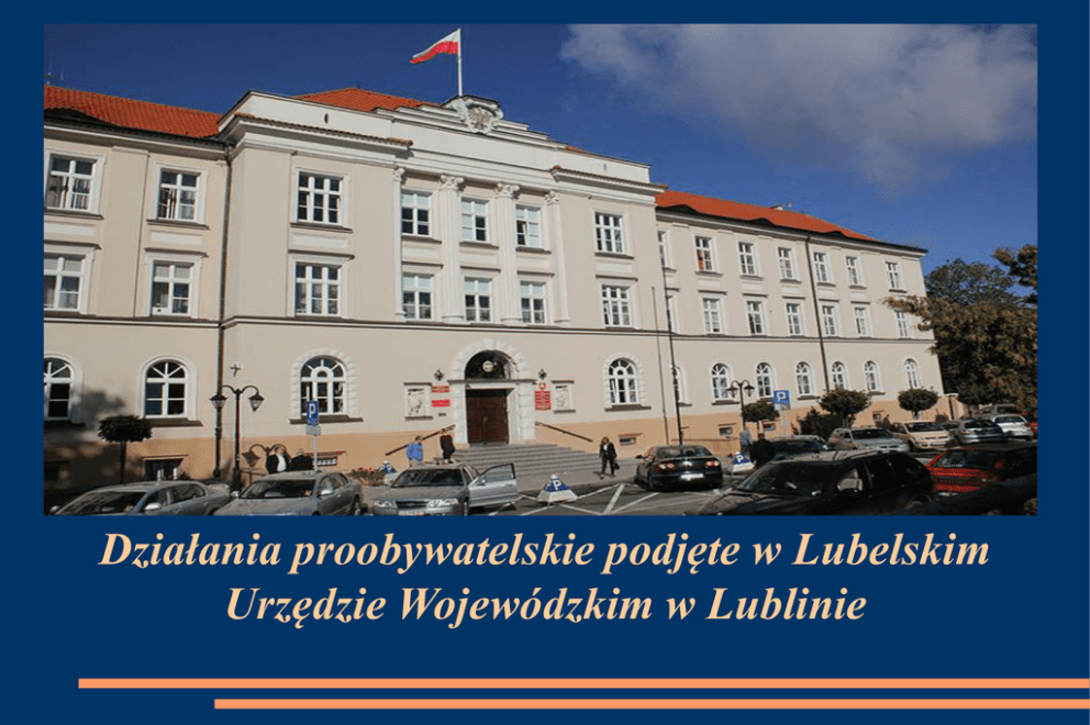 Działania proobywatelskie podjęte w Lubelskim Urzędzie Wojewódzkim w Lublinie KONTROLA ZARZĄDCZA ROZWÓJ URZĘDU, WYŻSZA JAKOŚĆ USŁUG Jednym z głównych narzędzi umożliwiającym sprawne zarządzanie oraz organizację urzędu jest kontrola zarządcza. Ustawa o finansach publicznych zobowiązuje do jej realizacji oraz wyznacza cele kontroli zarządczej. Zasadniczymi elementami kontroli zarządczej jest: efektywne zarządzanie ryzykiem ustalenie hierarchii celów i zadań Od dnia 16 marca 2012 r. w Lubelskim Urzędzie Wojewódzkim funkcjonuje Zarządzenie nr 68 Wojewody Lubelskiego w sprawie ustalenia Zasad i trybu zarządzania ryzykiem w Lubelskim Urzędzie Wojewódzkim. Zarządzenie nr 68 wraz z załącznikiem pt.”Zasady i tryb zarządzania ryzykiem.” określa m.in.: osoby odpowiedzialne za realizację zarządzenia, działania, które mają być podjęte i realizowane w celu efektywnego zarządzania ryzykiem, wzory dokumentów służących do realizacji procesu zarządzania ryzykiem. W oparciu o ww. procedury sporządzany jest w Urzędzie na początku każdego roku „Plan Działalności”, który składa się z dwóch części: A – zawiera do pięciu najważniejszych celów wraz z miernikami oraz określonymi czynnościami niezbędnymi do realizacji tych celów; B – zawiera zestawienie celów, zadań, podzadań, i działań w budżecie Urzędu w układzie zadaniowym oraz mierników określających stopień realizacji celów Każdego roku Dyrektorzy poszczególnych wydziałów LUW zobowiązani są do przeprowadzenia analizy celów istotnych z punktu funkcjonowania Urzędu, lecz nie ujętych w budżecie zadaniowym Propozycje celów do części A przesyłane są przez Dyrektorów do komórki obsługującej Zespół ds. Zarządzania Ryzykiem do dnia 31 października każdego roku. Przewodniczący Zespołu przedstawia Wojewodzie Lubelskiemu do dnia 30 listopada każdego roku propozycję celów, mierników i czynności wraz z opinią. Wojewoda przyjmuje maksymalnie 5 najważniejszych celów. Efektem zatwierdzenia propozycji celów jest ich realizacja oraz ocena poziomu realizacji pod względem: oszczędności, efektywności i skuteczności. Wśród celów strategicznych zawartych w części A Planu Działalności corocznie pojawiającym się celem jest: ”Kreowanie pozytywnego wizerunku Urzędu wśród obywateli” Do zrealizowanych działań w ramach tego celu strategicznego w latach 2012 - 2014 należą: uruchomienie systemu kolejkowego w dwóch obszarach działania Urzędu – wydawanie paszportów i obsługa cudzoziemców, sezonowa organizacja akcji pt. „Sobota z paszportem”, zorganizowanie Punktu Obsługi Klienta, przeniesienie stanowisk stricte obsługowych na parter budynku, zorganizowanie akcji „Jesień z profilem zaufanym”, utworzenie w oddziale ds. paszportów pokoju dla rodzica z dzieckiem, okresowa samoocena (ankieta) dla pracowników urzędu. Systemy kolejkowe W roku 2013 uruchomiono system kolejkowy w oddziale paszportów przy ul. Północnej oraz w oddziale ds. cudzoziemców – skrócono czas oczekiwania w kolejce, stanowiska obsługowe zostały równomiernie obłożone pracą, zmniejszyło to ilość interwencji w sprawie skarg oraz podniosło poziom satysfakcji klientów. SOBOTA Z PASZPORTEM Aby umożliwić klientom załatwienie spraw nie tylko w dni powszednie w sezonie przedwakacyjnym oraz wakacyjnym komórki Urzędu ds. paszportów w Lublinie, Białej Podlaskiej, Chełmie, Zamościu, Puławach były otwarte w soboty: - 10 i 24 maja 2014 r., - 14 i 28 czerwca 2014 r., - 5 i 12 lipca 2014 r. W tych dniach ok. tysiąca osób złożyło wniosek o paszport, a ponad pół tysiąca odebrało paszport. PUNKT OBSŁUGI KLIENTA W celu umożliwienia klientom otrzymania podstawowych informacji z zakresu funkcjonowania urzędu oraz prowadzonych spraw utworzono „Punkt obsługi klienta - POK”. POK jest miejscem składania oraz rejestracji dokumentów składanych przez obywateli osobiście oraz miejscem udzielania informacji. Aby ułatwić możliwość załatwienia sprawy wydłużono godziny pracy POK do godz. 17:30 w wybrane dni tygodnia. Oprócz realizacji wyżej wymienionych zatwierdzonych celów należy wymienić: Zakup defibrylatora – cel zrealizowany w 2014 roku, JESIEŃ Z PROFILEM ZAUFANYM W celu rozpowszechnienia możliwości komunikacji klienta z Urzędem zorganizowano akcję pt. „Jesień z profilem zaufanym w Lubelskim Urzędzie Wojewódzkim” Akcja trwała w dniach 19-21 listopada oraz 25-29 listopada 2013. Adresatami byli wszyscy klienci zainteresowani możliwością załatwienia swoich spraw w Urzędzie drogą elektroniczną za pomocą platformy ePUAP. Udział w akcji związany był jednocześnie z udziałem w konkursie na hasło promujące profil zaufany lub administrację elektroniczną. JESIEŃ Z PROFILEM ZAUFANYM W trakcie trwania akcji potwierdzono 152 profili zaufanych. W sumie zwiększyła się skala korespondencji za pośrednictwem platformy ePUAP, a co z tym się wiąże ilość spraw załatwionych z wykorzystaniem profilu zaufanego. Planowane są akcje o podobnym charakterze. POKÓJ DLA RODZICA Z DZIECKIEM W dniu 21 lutego br. w oddziale ds. paszportów został otwarty pokój dla rodzica z dzieckiem. Jest to wydzielone pomieszczenie dostosowane do potrzeb opieki nad dziećmi w trakcie wizyty w Urzędzie, odpowiednio wyposażone, zlokalizowane bezpośrednio przy stanowiskach obsługowych. ANKIETA SATYSFAKCJI KLIENTA Aby podnieść jakość świadczonych usług przez Lubelski Urząd Wojewódzki oraz wyjść naprzeciw oczekiwaniom naszych klientów w celu zidentyfikowania obszarów oczekiwań klientów oraz usprawnienia organizacji pracy w LUW od 2013 r. cyklicznie przeprowadzana jest „Ankieta satysfakcji klienta” - jest to forma bezpośredniego badania opinii społecznej nt. funkcjonowania Urzędu. Ankieta jest wypełniana przez klientów LUW za pośrednictwem internetu oraz na stanowisku potwierdzania profilu zaufanego, a jej