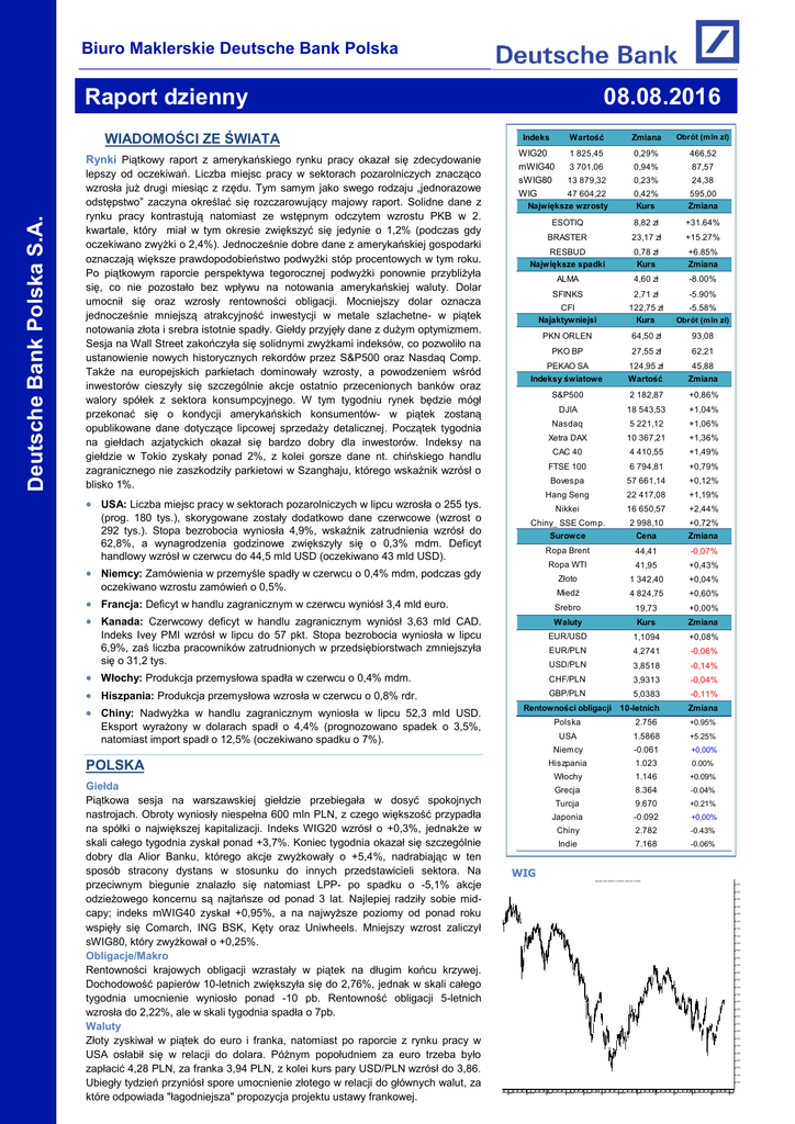 Raport dzienny - Biuro Maklerskie Deutsche Bank Polska