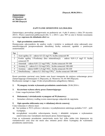 Zapytanie ofertowe - Gimnazjum w Zbąszyniu