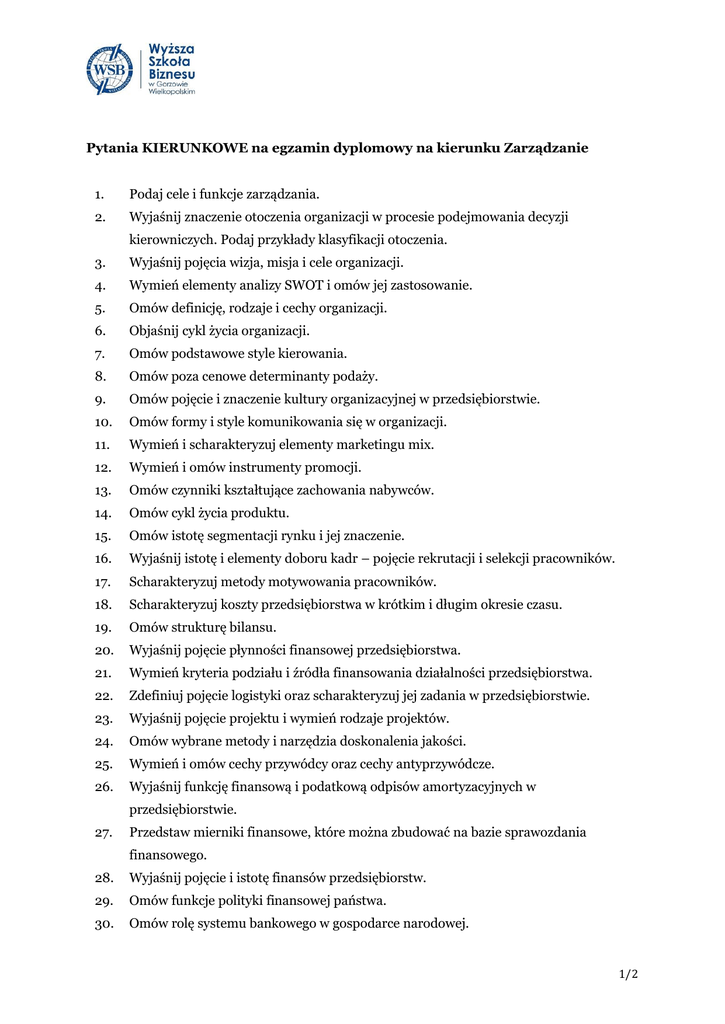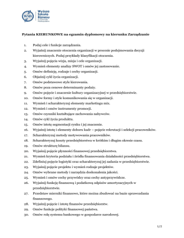 PYTANIA NA EGZAMIN DYPLOMOWY