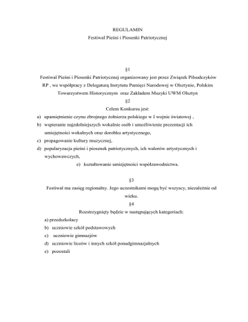 REGULAMIN Festiwal Pieśni i Piosenki Patriotycznej §1 Festiwal