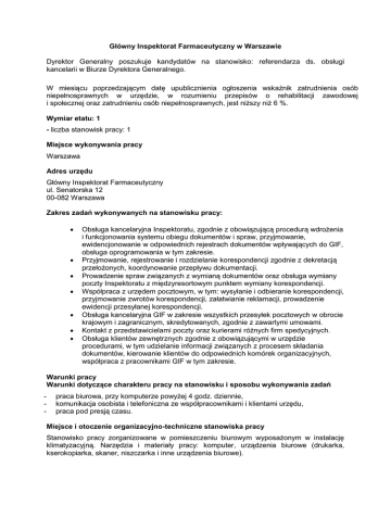 referendarza ds. obsług - Główny Inspektorat Farmaceutyczny