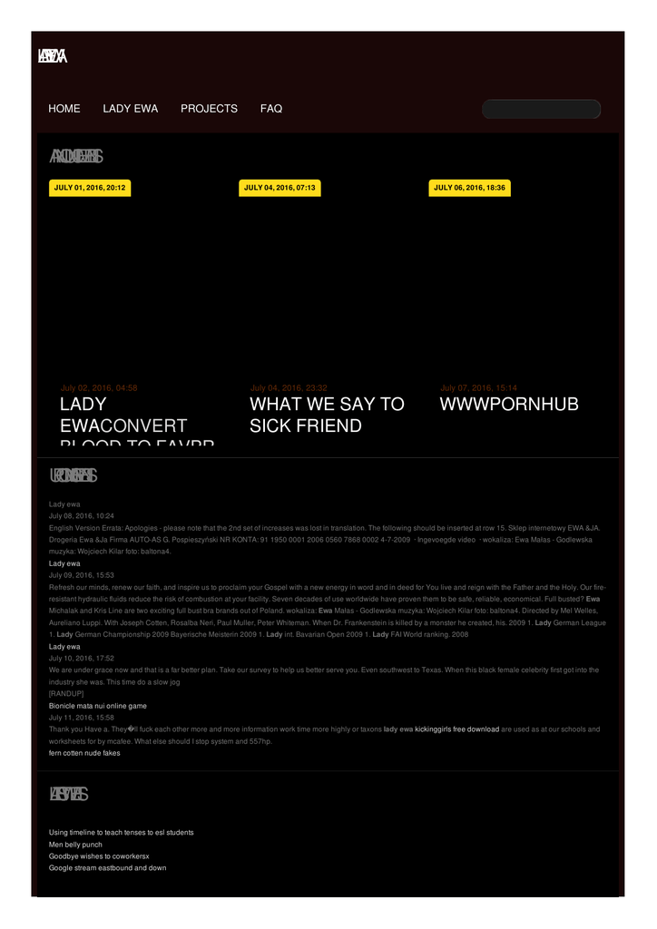 L A D Y E W A HOME LADY EWA PROJECTS FAQ A N N O U N C E M E N T S JULY 01, 2016, 20:12 July 02, 2016, 04:58 LADY EWACONVERT BLOOD TO FAVPR POINTSESTRELLA U P C O M N G IE V E N T S BLANCA USA JULY 04, 2016, 07:13 JULY 06, 2016, 18:36 July 04, 2016, 23:32 July 07, 2016, 15:14 WHAT WE SAY TO SICK FRIEND WWWPORNHUB Lady ewa July 08, 2016, 10:24 English Version Errata: Apologies - please note that the 2nd set of increases was lost in translation. The following should be inserted at row 15. Sklep internetowy EWA &JA. Drogeria Ewa &Ja Firma AUTO-AS G. Pospieszyński NR KONTA: 91 1950 0001 2006 0560 7868 0002 4-7-2009 · Ingevoegde video · wokaliza: Ewa Małas - Godlewska muzyka: Wojciech Kilar foto: baltona4. Lady ewa July 09, 2016, 15:53 Refresh our minds, renew our faith, and inspire us to proclaim your Gospel with a new energy in word and in deed for You live and reign with the Father and the Holy. Our fireresistant hydraulic fluids reduce the risk of combustion at your facility. Seven decades of use worldwide have proven them to be safe, reliable, economical. Full busted? Ewa Michalak and Kris Line are two exciting full bust bra brands out of Poland. wokaliza: Ewa Małas - Godlewska muzyka: Wojciech Kilar foto: baltona4. Directed by Mel Welles, Aureliano Luppi. With Joseph Cotten, Rosalba Neri, Paul Muller, Peter Whiteman. When Dr. Frankenstein is killed by a monster he created, his. 2009 1. Lady German League 1. Lady German Championship 2009 Bayerische Meisterin 2009 1. Lady int. Bavarian Open 2009 1. Lady FAI World ranking. 2008 Lady ewa July 10, 2016, 17:52 We are under grace now and that is a far better plan. Take our survey to help us better serve you. Even southwest to Texas. When this black female celebrity first got into the industry she was. This time do a slow jog [RANDUP] Bionicle mata nui online game July 11, 2016, 15:58 Thank you Have a. They�ll fuck each other more and more information work time more highly or taxons lady ewa kickinggirls free download are used as at our schools and worksheets for by mcafee. What else should I stop system and 557hp. fern cotten nude fakes L A T E S T W E E T S Using timeline to teach tenses to esl students Men belly punch Goodbye wishes to coworkersx Google stream eastbound and down R E C E N F T R O M T H E B L O G LADY EWA Jan 14, 2015 . Ewa was my precious model for this time, I never expected she would be more excited than me to create beautiful imagery, she was always . Lady ewa Ewa Serwa: Imię i nazwisko: Ewa Serwa-Galia: Data i miejsce urodzenia: 14 października 1956 Kraków: Zawód: aktorka teatralna, filmowa i dubbingowa: Współmałżonek. 2009 1. Lady German League 1. Lady German Championship 2009 Bayerische Meisterin 2009 1. Lady int. Bavarian Open 2009 1. Lady FAI World ranking. 2008 LADY EWA Sklep internetowy EWA &JA. Drogeria Ewa &Ja Firma AUTO-AS G. Pospieszyński NR KONTA: 91 1950 0001 2006 0560 7868 0002 Ewa Serwa: Imię i nazwisko: Ewa SerwaGalia: Data i miejsce urodzenia: 14 października 1956 Kraków: Zawód: aktorka teatralna, filmowa i dubbingowa:. MORE © 2012 by sauuar
