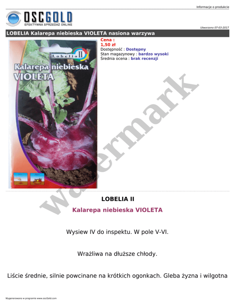 LOBELIA II Kalarepa niebieska VIOLETA Wysiew IV do inspektu. W