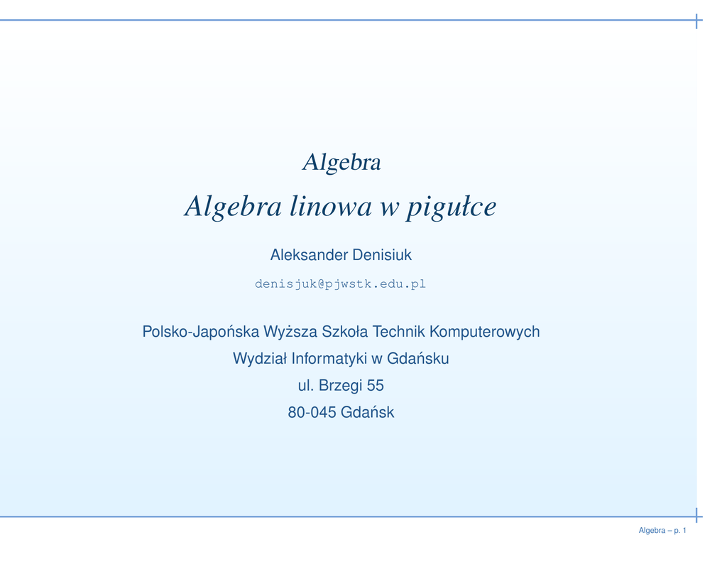 Algebra liniowa - Polsko-Japońska Akademia Technik