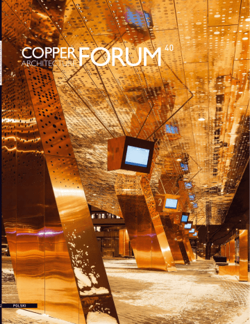 40 POLSKI COPPERCONCEPT.ORG 1 OD REDAKCJI RELACJE Z MIEDZIĄ W Copper Architecture Forum naszym celem jest zwrócenie uwagi na niektóre spośród najlepszych realizacji współczesnej architektury w Europie. Pouczające jest także ukazanie projektów, które łączy podobny kontekst, typologia, skala lub program w celu zbadania, w jaki sposób różni architekci wykorzystują miedź w odpowiedzi na podobne zagadnienia. Nasze pierwsze dwa projekty podejmują wyzwania związane z pomyślną integracją nowoczesnych interwencji w scenerii zabytkowych centrów miast. Temat Księżyca w Mechelen w Belgii (strony 4-7) nawiązuje do pobliskiej zabytkowej, bogato zdobionej kamiennej wieży i powraca w postaci delikatnie zaginanych powierzchni ze złotego stopu miedzi. Tak samo współczesne są pokryte mosiądzem dobudowy odnowionego klasycystycznego pałacu w Kortrijk, również w Belgii (strony 8-9). Inna interwencja architektoniczna, w zabytkowym budynku w Areosa w Portugalii (strony 10-13), wykorzystuje miedzianą powłokę w celu przekształcenia kamiennej ruiny w całkowicie nowoczesną willę. Architektoniczny wyraz tej typologii stanowi interesujące porównanie z willą o podobnej skali, zbudowaną na skalnym wypiętrzeniu nad estuarium rzeki w pobliżu Turku w Finlandii (strony 14-15). Następnie omawiamy dwa szkolne budynki, obydwa żywo odpowiadające na swój miejski kontekst. Pokryty mosiądzem żłobek w Paryżu (strony 16-19) stawia czoło otaczającym go wielopiętrowym, pozbawionym wyrazu budynkom i stanowi nowy obiekt zainteresowania dla lokalnych mieszkańców. Podobnie wyrazisty, pokryty złotym stopem miedzi fronton od strony ulicy łączy kilka całkowicie odmiennych budynków tworzących siedzibę szkoły w południowym Londynie (strony 20-23). Przechodząc do budynków uniwersyteckich, wieżowiec domu studenckiego w Lund w Szwecji (strony 24-25) maksymalnie wykorzystuje scenerię parku, w którym jest usytuowany, podkreślając swoją wertykalność zróżnicowaniem odcieni wstępnie oksydowanej miedzi. Zupełnie odmienne podejście przyjęto w projekcie nowej szkoły sztuk pięknych wraz z mieszkaniami w samym sercu Calais we Francji (strony 2831), która wyróżnia się trzema zasłonami z siatki wykonanej ze złotego stopu miedzi, dominującymi we frontonie od strony ulicy. Miedź odgrywa także główną rolę w scenerii ulicy w sercu Lahti w Finlandii (strony 32-37). Nowe centrum przesiadkowe, zlokalizowane obok głównej stacji kolejowej, silnie eksponuje użycie miedzi obejmujące przystanki autobusowe, obudowy schodów i inne towarzyszące elementy, scalając je i podnosząc jakość krajobrazu miasta. Ostatnim etapem naszej podróży jest prosty, nowoczesny budynek w zabytkowej dzielnicy Hamburga (strony 38-39), odznaczający się obłymi narożnikami elegancko wykonanymi z gontu ze złotego stopu miedzi. Z myślą o Państwa potrzebach gorąco pragniemy rozwijać ten magazyn oraz stronę copperconcept.org. Prosimy o przekazanie nam swoich uwag i zwrotnej informacji poprzez wypełnienie ankiety lub kontakt drogą e-mail z lokalnym członkiem Zespołu Redakcyjnego. Zespół Redakcyjny Zarejestruj się na stronie Copper Architecture Forum – copperconcept.org Redaktor naczelny: Robert Pintér Zobacz poprzednie numery magazynu – copperconcept.org Z-ca redaktora naczelnego: Chris Hodson RIBA Skontaktuj się z redakcją – [email protected] Zespół redakcyjny: Ari Lammikko, Chris Hodson, Graeme Bell, Herbert Mock, Hermann Kersting, Irina Dumitrescu, Robert Pintér E-mail: [email protected] Prześlij swój projekt na stronę – copperconcept.org Przeczytaj więcej o konkursie European Copper in Architecture Awards – copperconcept.org Copper Architecture Forum 40, Czerwiec 2016 Copper Architecture Forum jest elementem europejskiej kampanii „Miedź w Architekturze”. Magazyn jest publikowany dwa razy w roku w nakładzie 25 000 egzemplarzy. Magazyn jest przeznaczony do architektów i osób zawodowo związanych z branżą budowlaną i wydawany jest w językach: angielskim, czeskim, francuskim, hiszpańskim, niemieckim, polskim, rosyjskim, węgierskim i włoskim. Okładka: Centrum komunikacyjne w Lahti, Finlandia (strona 32). Foto: Mika Huisman 2 COPPER ARCHITECTURE FORUM 40/2016 Adres: CAF, European Copper Institute, Avenue de Tervueren 168 b-10, B-1150 Brussels, Belgium Wydawca: Nigel Cotton, ECI Skład i produkcja: ECI Druk: Copy & Consulting Kft., Hungary Panel redakcyjny: Birgit Schmitz, De Kazimierz Zakrzewski, Pl Marco Crespi, It Nicholas Hay, UK Nikolaos Vergopoulos, Gr Nuno Diaz, Es Olivier Tissot, Fr Pia Voutilainen, Se, No, Fi, Dk Robert Pintér, Hu, Cz, Svk, Ru Yolande Pianet, Benelux [email protected] [email protected] [email protected] [email protected] [email protected] [email protected] [email protected] [email protected] [email protected] [email protected] © Copper Architecture Forum 2016 SPIS TREŚCI 40 2 RELACJE Z MIEDZIĄ – uwagi od redakcji 4 – 7 KSIĘŻYC W MECHELEN – współczesna interwencja, inspirowana modułem księżycowym Apollo 11, jednoczy centrum sztuki dla dzieci 8 – 9 ZABYTKI I NOWOCZESNOŚĆ – pokryte mosiądzem dobudowy pomagają przekształcić zabytkowy pałac w luksusowe apartamenty 10 – 13 RUSTYKALNA REWITALIZACJA – perforowana i nieprzezroczysta miedź uzupełnia rustykalne kamienne ściany domu jednorodzinnego 14 – 15 MIEDŹ NA SKALNYM WZNIESIENIU – miedź obramowuje wspaniałe widoki z willi położonej na skalnym wypiętrzeniu, wysoko ponad wodą 16 – 19 KRAJOBRAZ Z HARMONIJKOWYM DACHEM – chociaż ukryty od ulicy, nowy żłobek stanowi mocne przesłanie tego projektu 20 – 23 INTEGRUJĄCA MIEDŹ – wyrazista, pokryta złotym stopem miedzi elewacja od strony ulicy oznajmia wejście do szkoły w Londynie 24 – 27 CENTRUM STUDENCKIE – projekt tego ikonicznego wieżowca stanowi wzorzec udanego domu studenckiego 28 – 31 SZTUKA I MATERIALNOŚĆ – różne postacie stopu miedzi wybrano, aby in