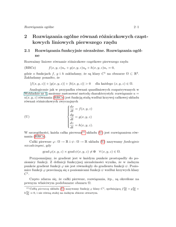 jest całka pierwszą układu (2.3), zatem rozwiązaniem równania (2.2).