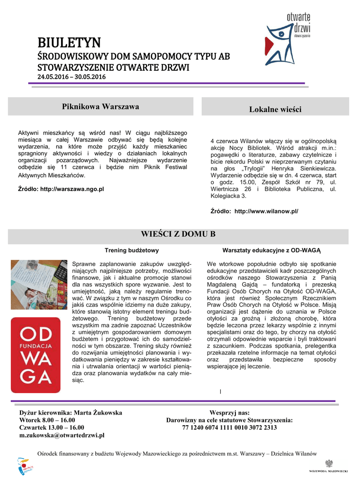 biuletyn - Stowarzyszenie Otwarte Drzwi