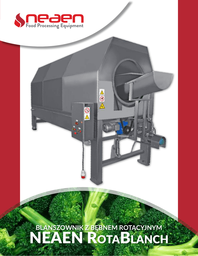 Food Processing Equipment BLANSZOWNIK Z BĘBNEM ROTACYJNYM NEAEN RotaBlanch Blanszownik z bębnem rotacyjnym NEAEN RotaBlanch służy do blanszowania warzyw, owoców, roślin strączkowych, makaronów i owoców morza przed puszkowaniem lub zamrożeniem. W przypadku niektórych wrażliwych produktów, blanszowanie może zastąpić gotowanie - w rzeczywistości może być ono czasami jedynym sposobem ich gotowania. Blanszowanie pomaga zachować witaminy oraz pełne właściwości odżywcze produktu, a także zachować atrakcyjny wygląd i naturalny, świeży kolor. Procesy zachodzące w trakcie blanszowania: D ezynfekcja Z miękczanie D ezaktywacja enzymów C zęściowe usunięcie powietrza z produktu C zęściowe usunięcie wody z produktu Krótkotrwały kontakt z parą lub gorącą wodą pozwala na zlikwidowanie obecności bakterii i grzybów w produkcie, dzięki czemu stanie się on bezpieczniejszy dla konsumenta. Zmiękczanie - blanszowane produkty wymagają mniej czasu na przygotowanie w postaci końcowej. Dezaktywacja enzymów - Blanszowanie spowalnia lub zatrzymuje działanie enzymów, które mogą powodować pogorszenie koloru, smaku i aromatu produktu. Niektóre produkty uzyskują bardziej żywe barwy w trakcie blanszowania. Częściowe usunięcie powietrza z produktu - przyczynia się do zwiększenia trwałości puszkowanego lub mrożonego produktu. Zmniejsza to także łączną objętość produktu. Częściowe usunięcie wody - ułatwia późniejsze zamrożenie produktu na linii produkcyjnej: owoców mrożonych przy wykorzystaniu technologii IQF, warzyw, roślin strączkowych i owoców morza. Urządzenie NEAEN RotaBlanch jest przeznaczone do blanszowania warzyw, roślin strączkowych, owoców i owoców morza za pomocą wody lub pary wodnej, w trybie pracy ciągłej, zapewniając przy tym wysoką wydajność. Uniwersalność Już w podstawowej wersji NEAEN RotaBlanch umożliwia zarówno blanszowanie parą wodną lub wodą, umożliwiając w ten sposób przetwarzanie szerokiej gamy produktów wykorzystując przy tym tylko pojedyncze urządzenie. Wysoka jakość produktu Blanszowanie produktu realizowane jest poprzez ciągłe jego mieszanie wywołane rotacją komory roboczej, co zapewnia równomierne gotowanie ze wszystkich stron, dzięki czemu unika się zjawiska przywierania i sklejania produktu, na co szczególnie podatne są lepkie produkty spożywcze takie, jak ryż i makarony. Równomierne dostarczenie produktu do komory blanszowania zapewniane jest za poprzez przenośnik podający. Produkt jest wyładowywany bez występowania “martwych stref”, dzięki zastosowaniu specjalnego urządzenia zaprojektowanego specjalnie pod kątem zapobiegania temu zjawisku. W celu uzyskania szybkiego chłodzenia po zakończeniu blanszowania produkt jest doprowadzany do chłodnicy bębnowej lub przenośnikowej. W zależności od rodzaju produktu może on być chłodzony przy użyciu powietrza lub wody. Korzyści Uniwersalność - jedno urządzenie może być używane zarówno do blanszowania parą wodną, jak i wodą. Czas blanszowania można modyfikować w szerokim zakresie poprzez zmianę kąta nachylenia bębna i prędkość jego obrotu, co pozwala na zmianę czasu blanszowania od 10 do 15 razy. Możliwe jest także stosowanie zamrożonych produktów surowych. Niezawodność - NEAEN RotaBlanch przeznaczony jest do intensywnej pracy w perspektywie długoterminowej. Urządzenie jest produkowane w naszym własnym zakładzie produkcyjnym na terenie Europy, z wysokiej jakości materiałów i elementów pochodzenia europejskiego. Dobra wydajność - konstrukcja radialna eliminuje możliwość uszkodzenia wału. Urządzenie jest łatwe do utrzymania, cechuje się przy tym prostym dostępem do obszarów wewnętrznych. Niski poziom wibracji i hałasu. Blanszownik może być wyposażony w moduł tymczasowego rozmrażania pozwalający na stosowanie produktów zamrożonych przy wykorzystaniu technologii IQF. Konstrukcja blanszownika z bębnem rotacyjnym NEAEN RotaBlanch Blanszownik składa się z cylindrycznej, poziomej izolowanej termicznie komory, zamontowanej na solidnej ramie (zapewniającej niezawodność i stabilność całego urządzenia, nawet przy dużych jego rozmiarach), napędu, system dozowania pary i gorącej wody oraz systemu sterowania. Pojemność użyteczna (produkt + woda), l, 20% napełnienia bębna Średnica komory roboczej, mm / Długość komory roboczej, mm 2000 3000 4000 5000 6000 7000 8000 9000 10000 Rodzaj ogrzewania Materiał, stal nierdzewna Konstrukcja 800 200 300 400 500 600 700 800 1000 1200 1500 1800 2000 470 630 900 790 1130 1770 2540 3140 940 1360 2120 3050 3760 1100 1590 2470 3560 4400 1260 1810 2830 4070 5020 1410 2030 3180 4580 5660 1570 2260 3540 5080 3280 Bezpośredni wtrysk pary, podgrzewana płaszcz (pary, gazu, energii elektrycznej), w połączeniu AISI304 / AISI316L Jednowarstwowa, ocieplony, z płaszczem, z płaszczem + izolacja FIRMA EMA EUROPE DYSPONUJE PONAD TRZYDZIESTOLETNIM DOŚWIADCZENIEM W ZAKRESIE ROZWOJU, PROJEKTOWANIA I PRODUKCJI SPRZĘTU PRZEMYSŁOWEGO PRZEZNACZONEGO DLA TERMICZNEJ OBRÓBKI ŻYWNOŚCI. Gama dostępnych na rynku urządzeń obejmuje smażalniki przenośnikowe do pracy ciągłej oraz piekarniki, frytkownice bębnowe, blanszowniki wsadowe, bębnowe oraz przenośników, odmrażacze, kotły warzelne do pracy ciągłej i wsadowe, zarówno atmosferyczne, jak i próżniowe, skrobakowe wymienniki ciepła, a także szeroki zakres urządzeń pomocniczych takich jako zmywaki, przenośniki, pompy, homogenizatory i wiele innych. Nasza firma zapewnia pełną obsługę cyklu produkcyjnego, poczynając od projektowania rozwiązań technologicznych, a kończąc na produkcji urządzeń o dowolnej złożoności w naszym własnym zakładzie produkcyjnym znajdującym się w samym sercu Europy. Zapewniamy także implementację wyposażenia w miejscu docelowym, przestrzeganie warunków gwarancji oraz serwis pogwarancyjny w ramach naszego własnego centru